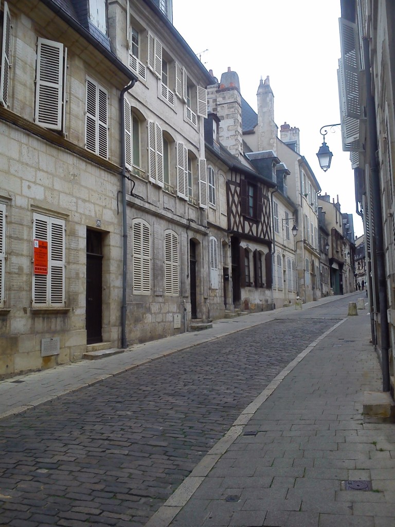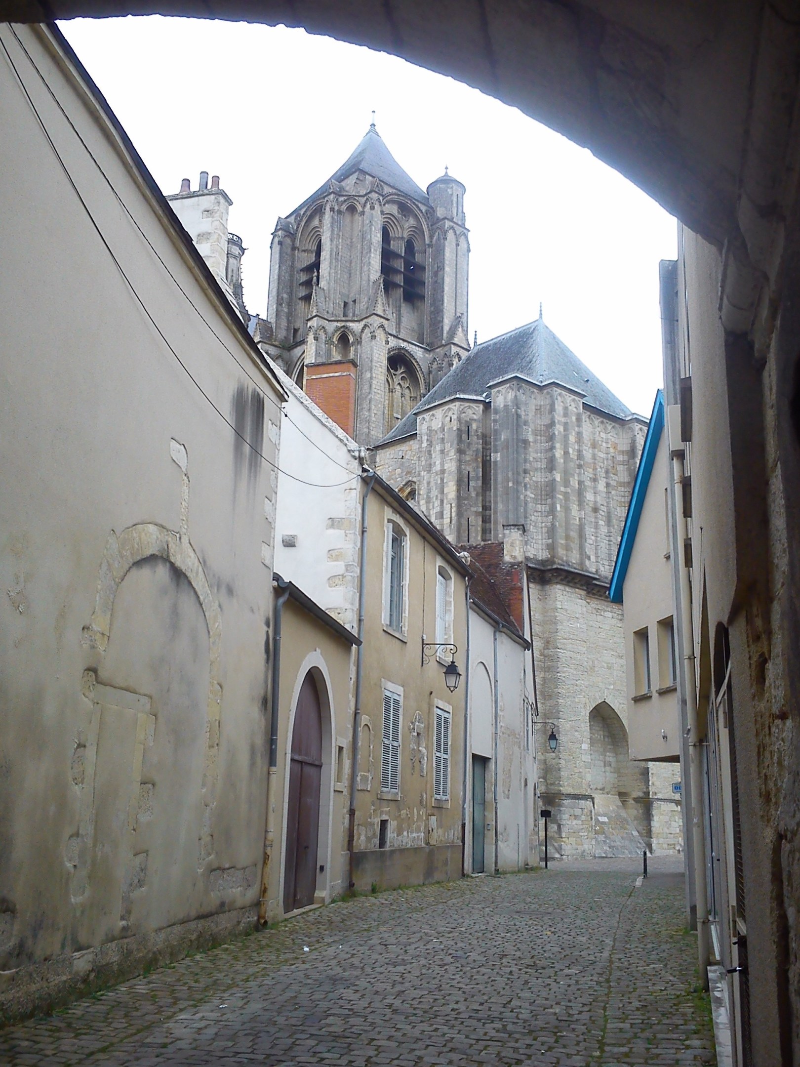 La rue de l’Hôtel Lallemant est toujours aussi belle et m’entraîne par la place George Sand vers une vue sur la cathédrale que j’affectionne particulièrement: je suis passé là de nombreuse fois pour observer son clocher surgissant au dessus des maisons dans un ciel fermé par un porche en haut de la rue Moyenne. A la nuit tombée et sous ce porche, nombre d’adolescents, délaissant la vue sur la cathédrale, se sont tournés vers les yeux de l’autre et ses tendres promesses… Je ne peux qu’approuver leur juvénile passion, les mêmes passions, moins juvéniles, m’ayant laissé entrevoir en ces lieux aussi les promesses de nuits adorables.