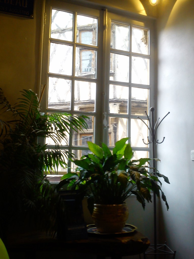 Je suis entré au « Comptoir de Paris », la brasserie qui fait l’angle de la rue Mirebeau sur la place Gordaine et je suis monté au premier étage, j’ai commandé une salade berrichonne et un verre de Menetou Salon blanc. Mes yeux étaient rivés à la façade à pans de bois visible à travers la fenêtre.