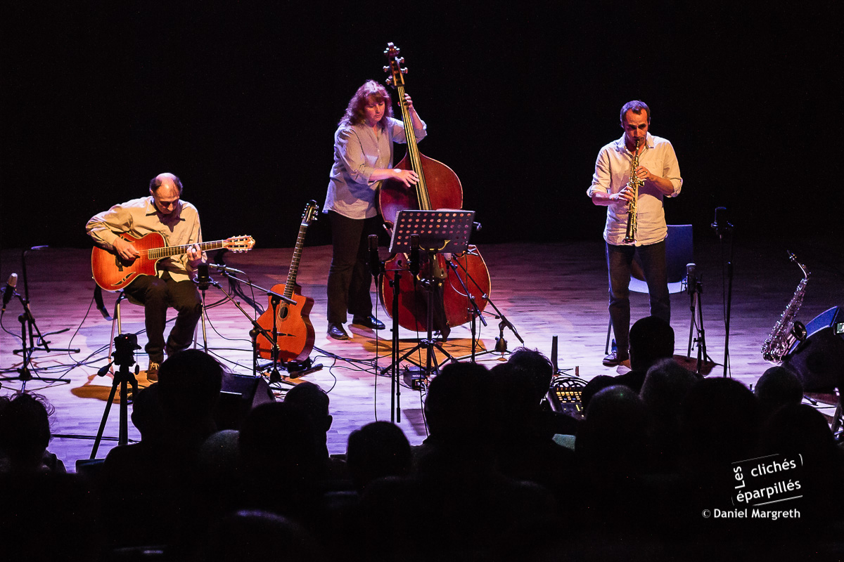 Jazzmuche est composé de Bob Franey à la guitare et aux compositions, Michèle Franey à la contrebasse et Stéphane Guillaud aux saxophones.