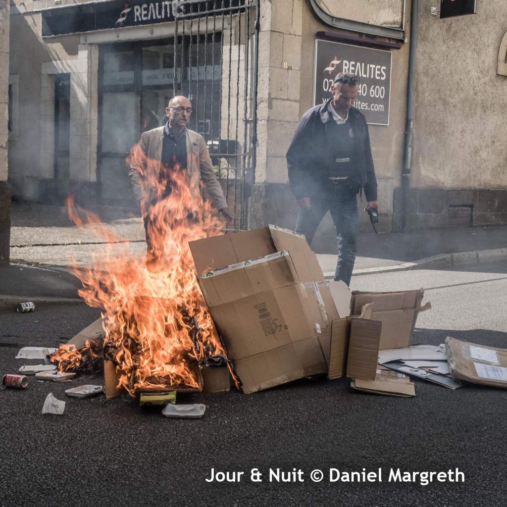 Le cortège, après une nouvelle traversée du centre-ville, s’est dirigé vers la Préfecture où un petit incendie de papier[1] a été allumé devant la grille.