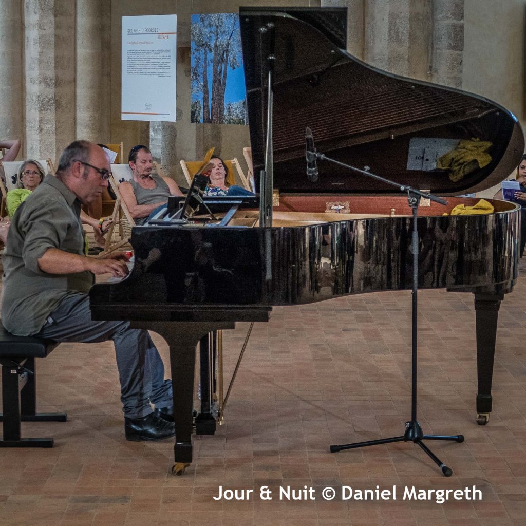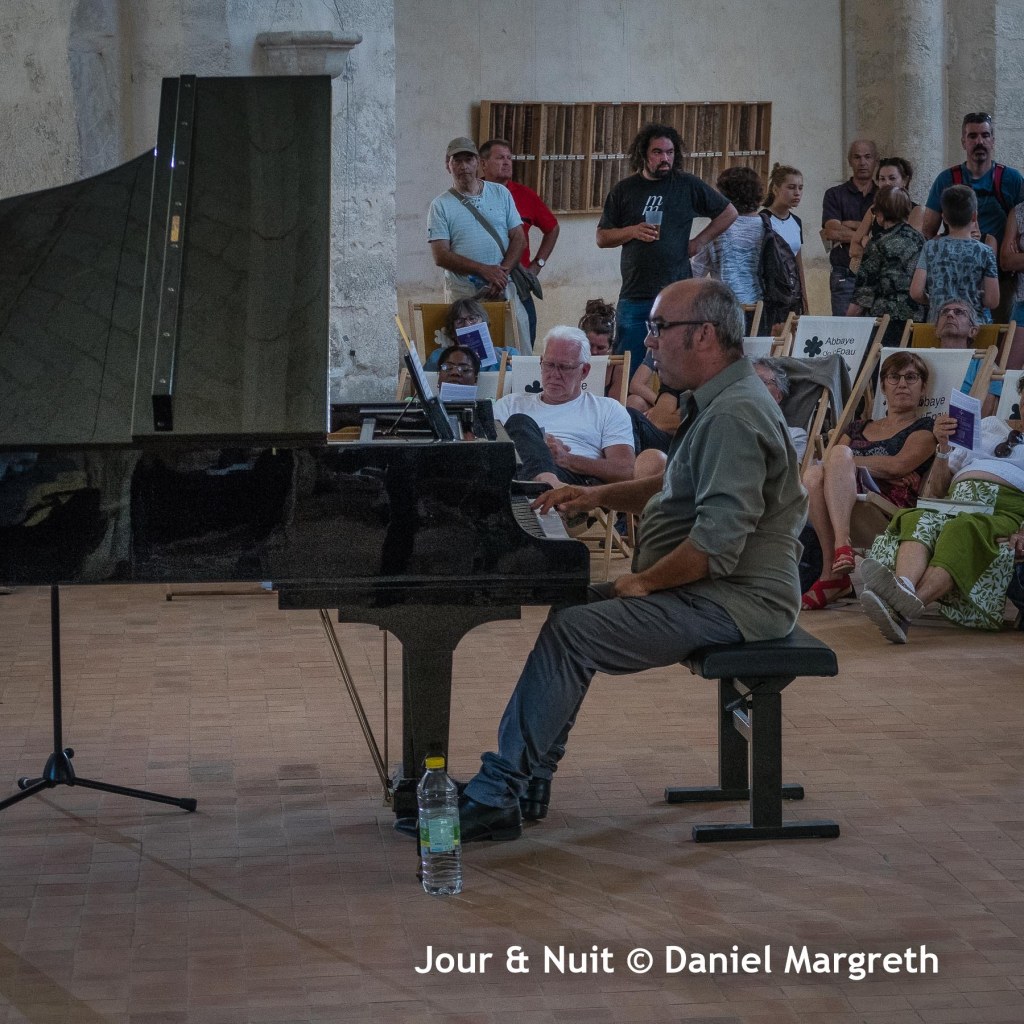 Ensuite direction l’Abbatiale pour se délecter tout en douceur avec « An Hour For Piano » par Samuel Boré. Une oeuvre minimaliste de Tom Johnson pour méditer tranquillement où le son du piano a traversé un silence monacal quasi mystique…
