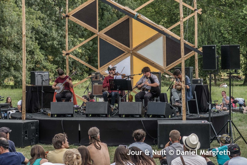Et voilà que la fin d’après-midi arrive dans le parc avec Sourdurent (Transe du Massif Central) … Ce groupe de quatre musiciens revisite totalement les chants et musiques folkloriques en leurs donnant une sonorité nouvelle grâce à l’électronique et à leur inventivité …