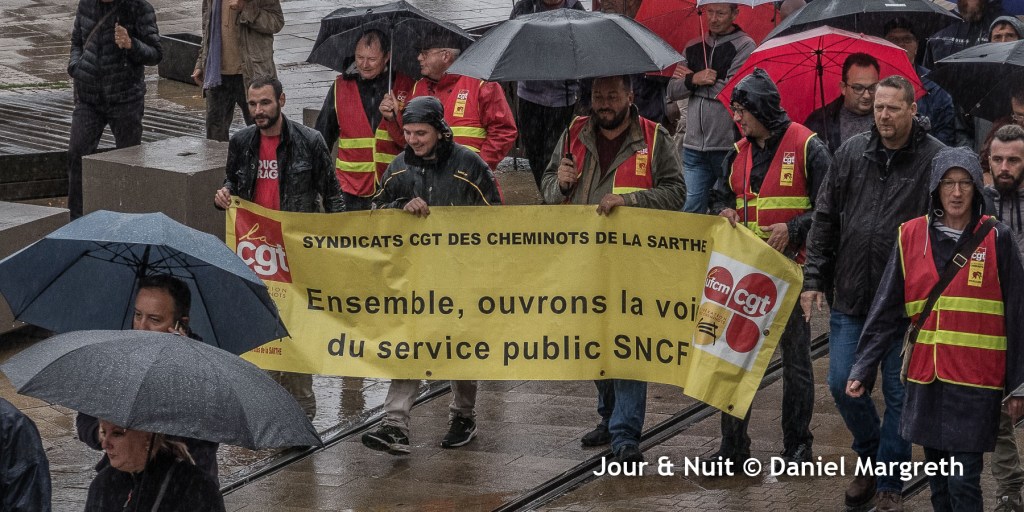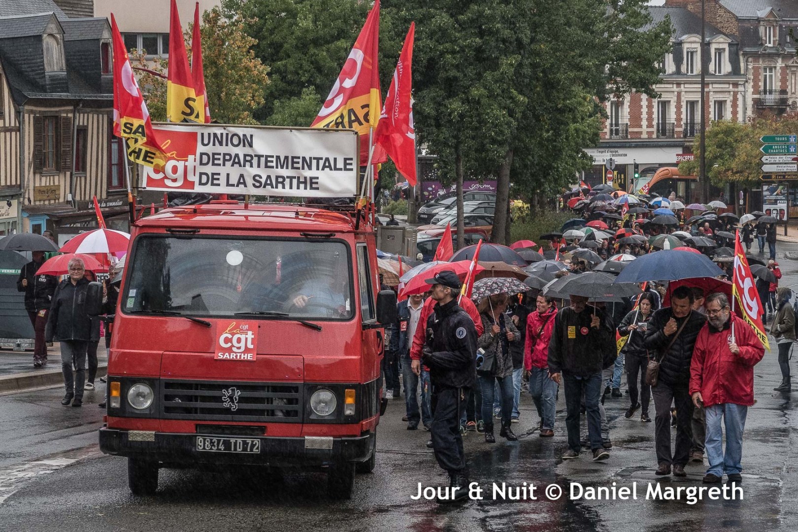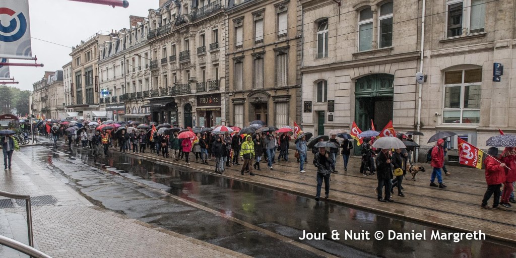 La manifestation syndicale à l’appel de la CGT et de la FSU contre la réforme des retraites a regroupé près de 1700 personnes courageuses qui ont arpenté les rues du Mans sous la pluie.