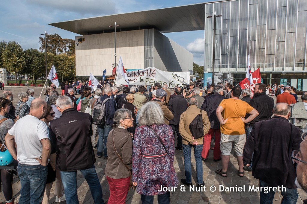 Une centaine de personnes s’était rassemblée sur la place des Jacobins au Mans en solidarité avec le peuple Kurde pour en appeler à protester contre l’agression du Président Turc à l’appel du Collectif 72 pour la Paix , la Ligue des Droits de l’Homme, la France Insoumise, la CGT et la FSU.