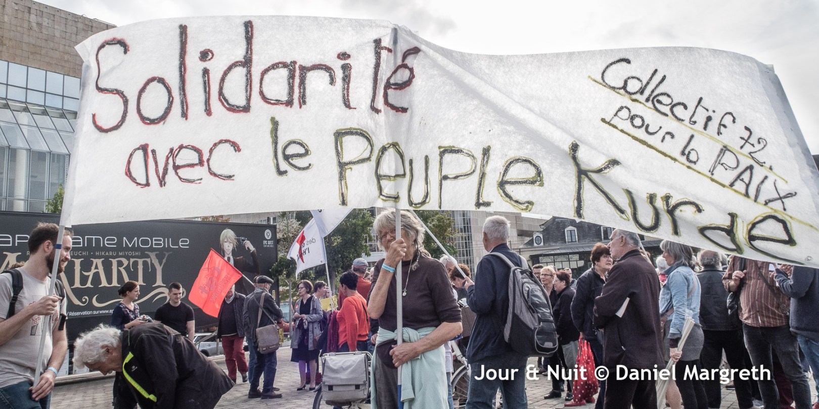 Une centaine de personnes s’était rassemblée sur la place des Jacobins au Mans en solidarité avec le peuple Kurde pour en appeler à protester contre l’agression du Président Turc à l’appel du Collectif 72 pour la Paix , la Ligue des Droits de l’Homme, la France Insoumise, la CGT et la FSU.