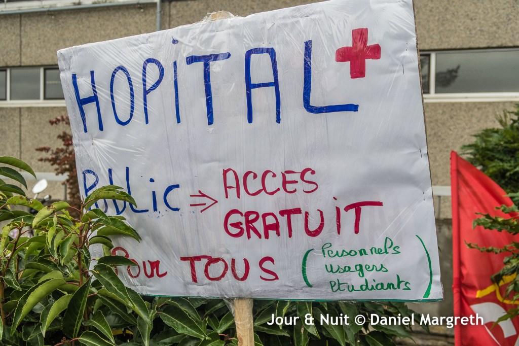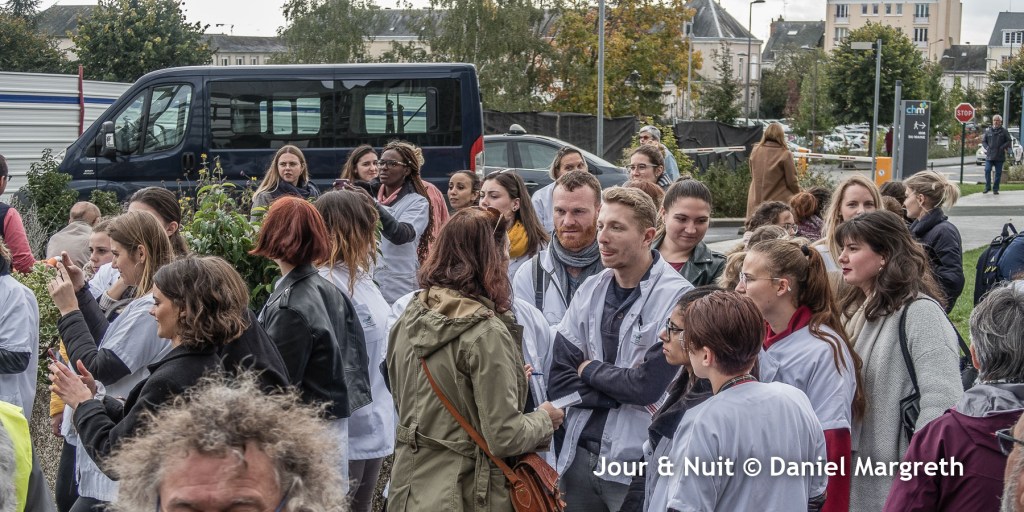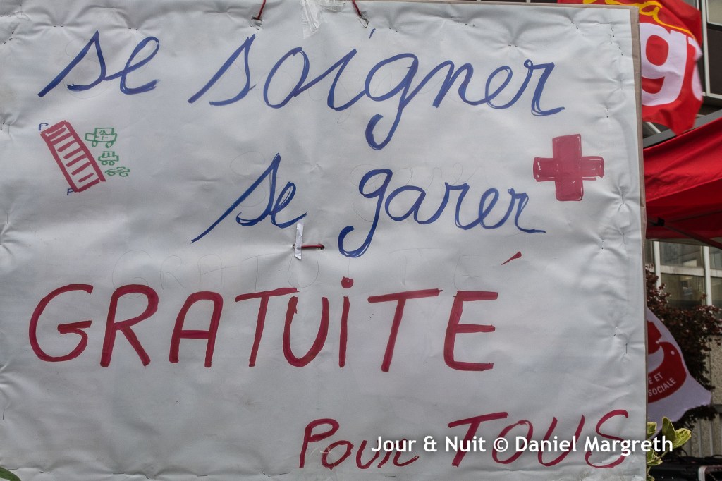 On pouvait y voir, munis de pancartes et drapeaux, des militants syndicaux, des personnels, des usagers, des gilets jaunes et une délégation importante d’élèves infirmiers réclamant la gratuité du stationnement.