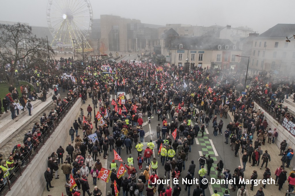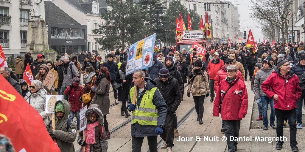 Dès le matin de bonne heure, une bonne centaine de gilets jaunes étaient mobilisés pour marquer leur volonté de convergence contre la réforme des retraites. Rassemblés devant l’emblématique usine Renault du Mans, ils ont tenus la route d’accès à l’usine toute la matinée puis sont partis vers midi en cortège jusqu’au point de rendez-vous des syndicats en gare nord.