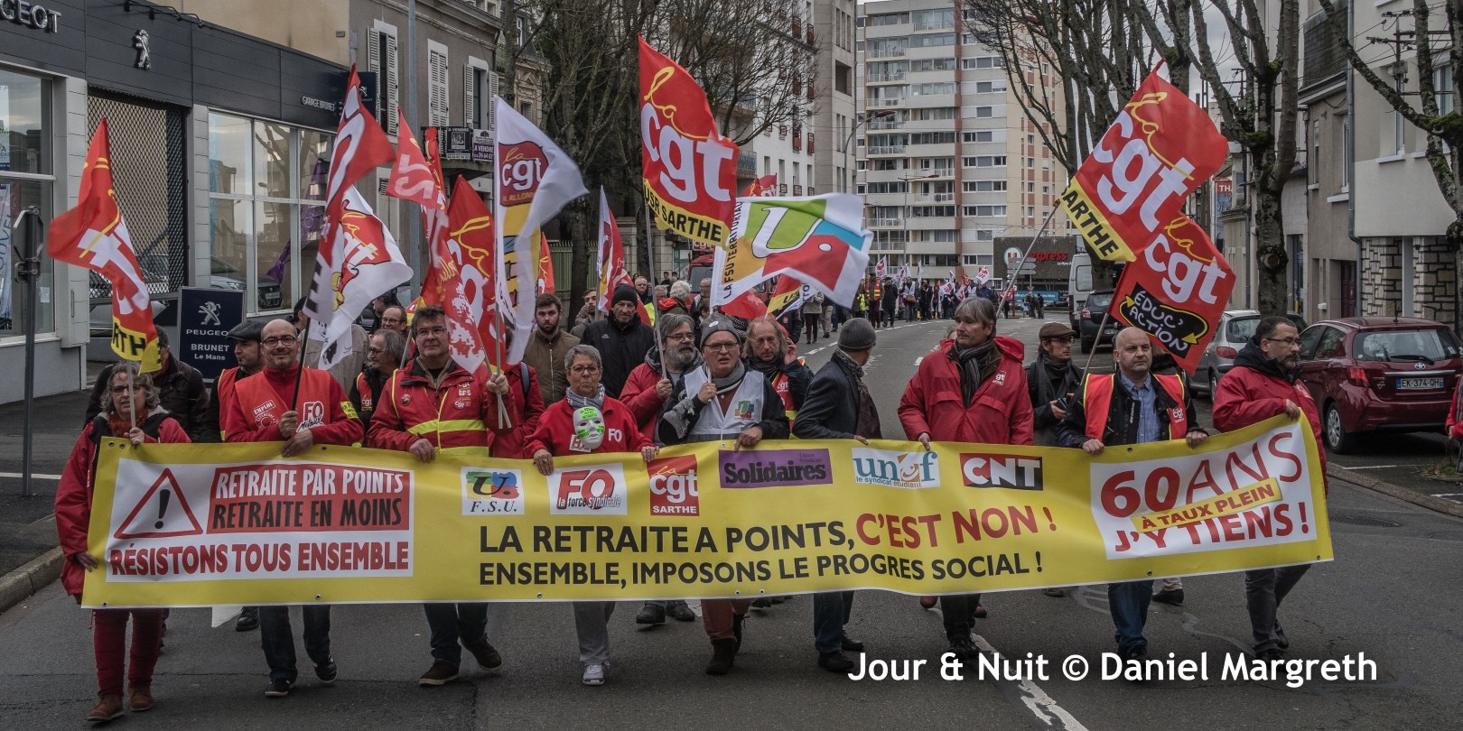 Malgré les rencontres entre le Premier Ministre et toutes les directions syndicales hier, et pour la quinzième journée de grève, les manifestants ont défilé dans les rues du Mans ce jeudi 19 décembre en partant cette fois du bâtiment de la CPAM pour dire leur opposition à la réforme des retraites de Macron.