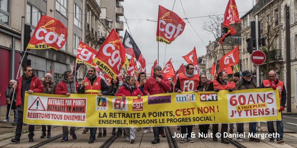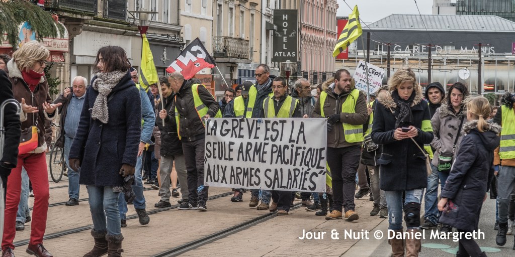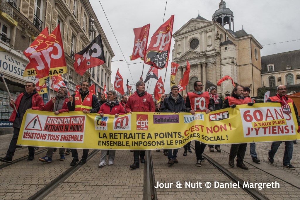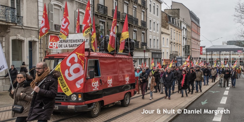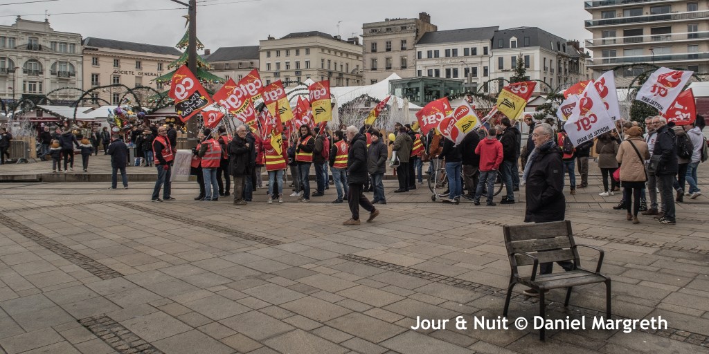 La grève des cheminots du Mans, à nouveau prolongée jusqu’au mardi 24 décembre, est toujours le fer de lance de la mobilisation au Mans. Leur détermination encourage les manifestants à tenir la rue 3 fois par semaine depuis le 5 décembre malgré la proximité de Noël…