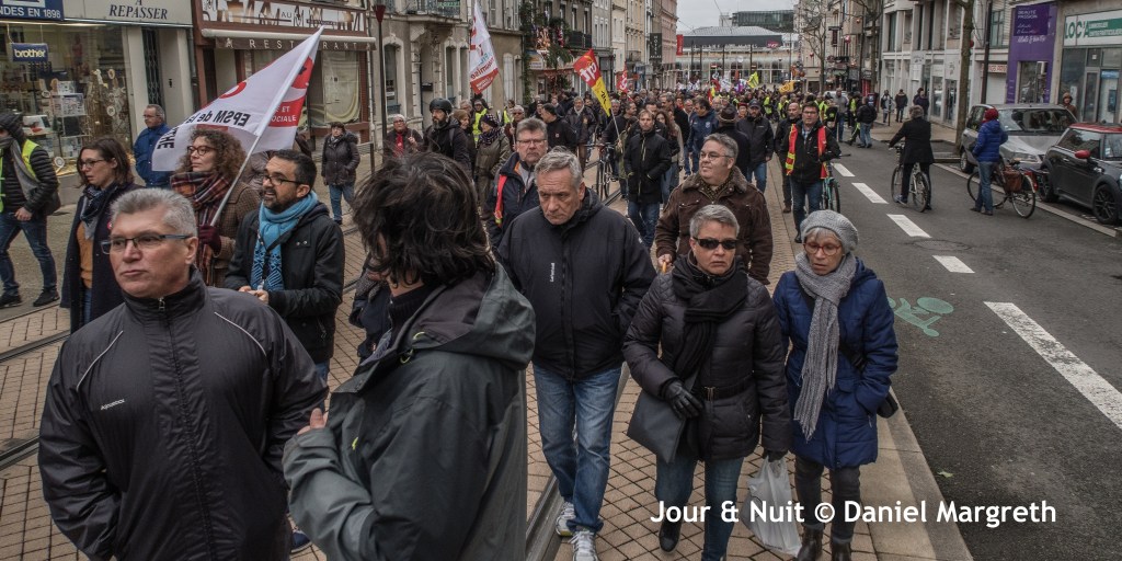Malgré à nouveau une pluie incessante, les grévistes et les manifestants, d’abord rassemblés sur le parvis nord de la gare, sont partis en manifestation par l’avenue Général Leclerc , la rue des Minimes, la place de la République, la rue Gambetta puis sont revenus à la gare par les quais.