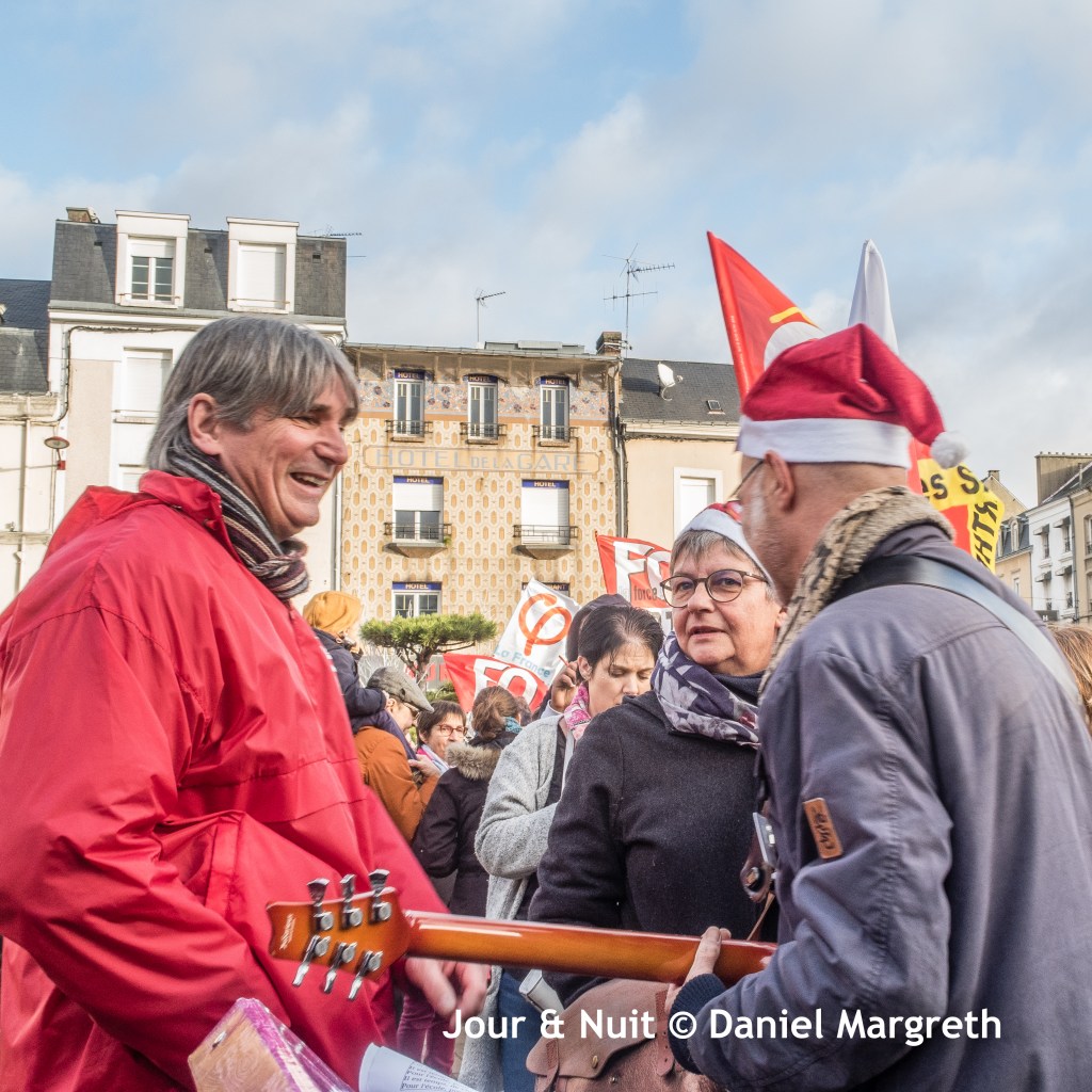Puisque Macron n’entend pas les grévistes contre la réforme de liquidation de notre système des retraites, ils ont décidé de fêter la « trêve de Noël » à leur façon: un rassemblement festif et revendicatif sur le parvis nord de la gare du Mans…