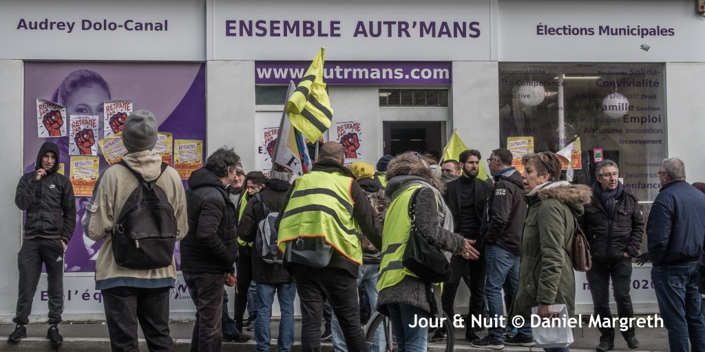 Une pause « décorative » a eu lieu devant la permanence de Damien Pichereau, député LREM et le local d’Audrey Dolo-Canal, tête de liste d’Ensemble Autr’Mans aux municipales de 2020…