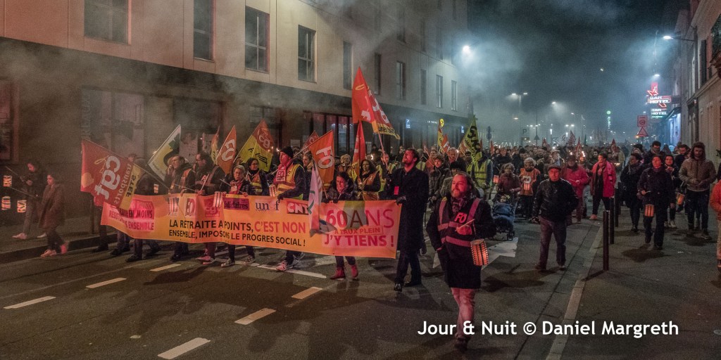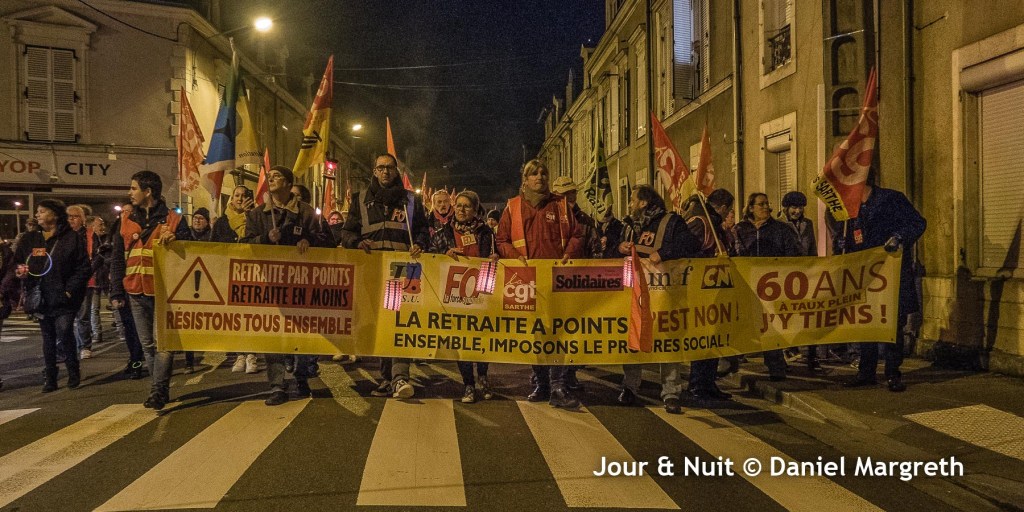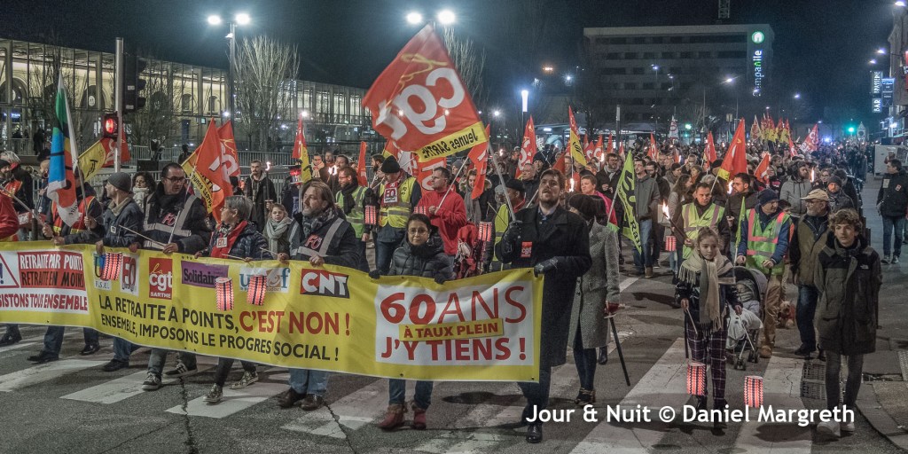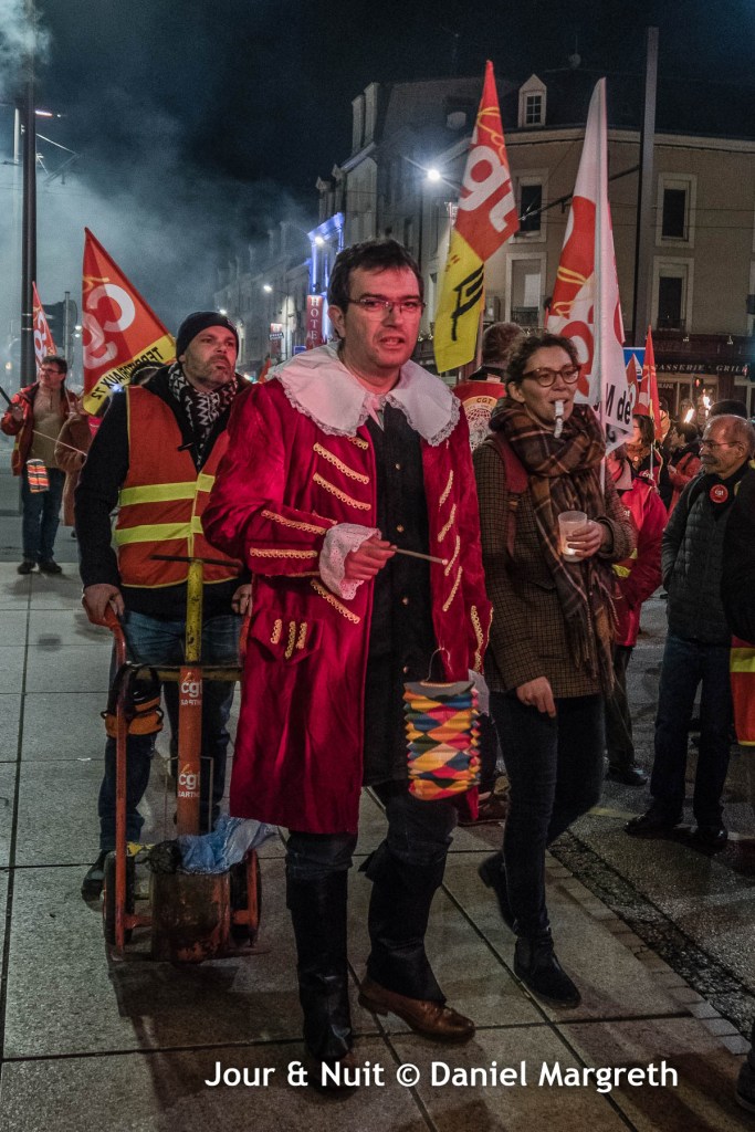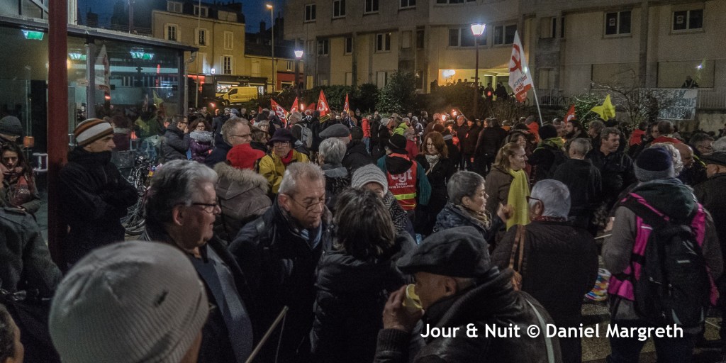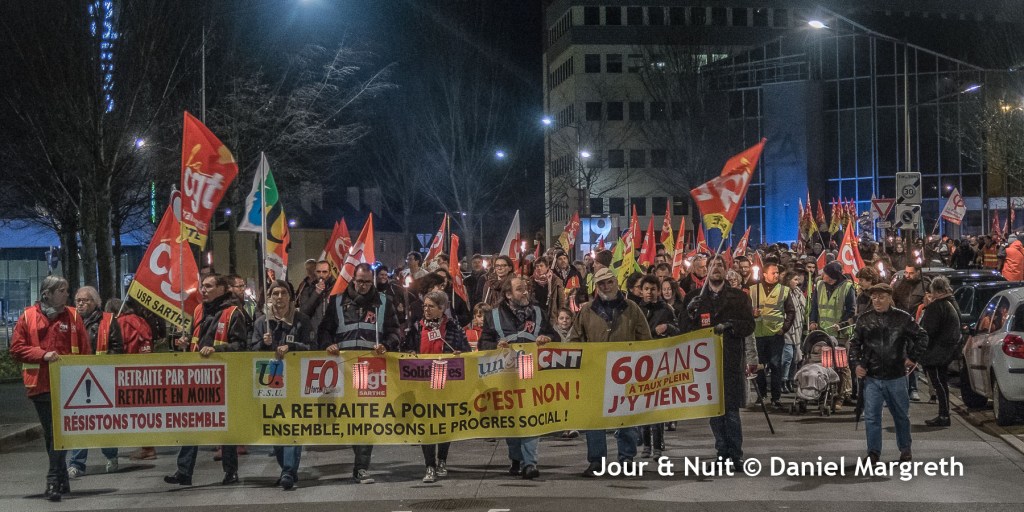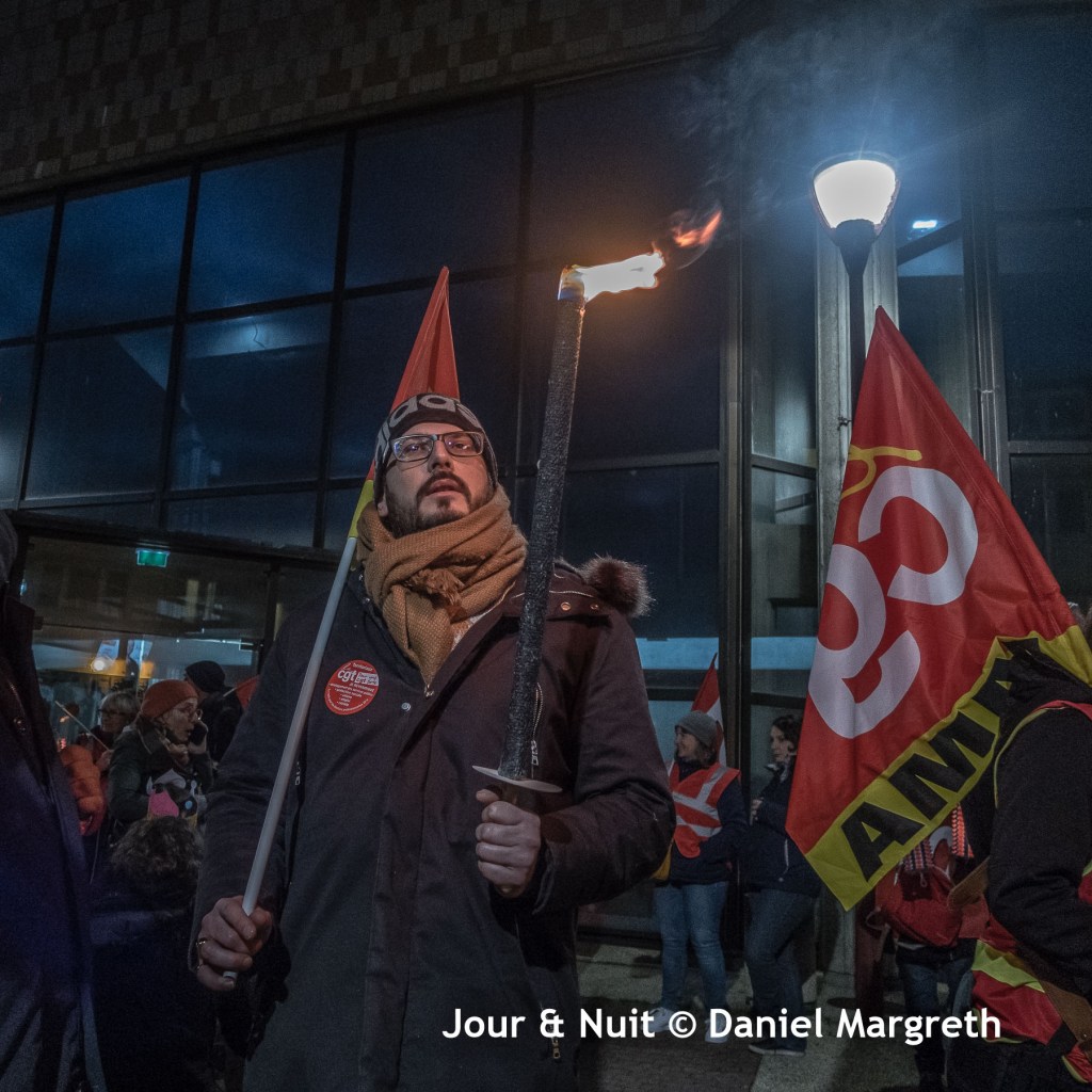 Une première au Mans depuis le début des grèves contre la réforme des retraites à points du gouvernement, ce vendredi 10 janvier 2020, l’intersyndicale avait appelé à manifester aux flambeaux pour le retrait de la réforme!