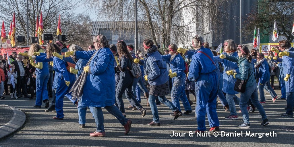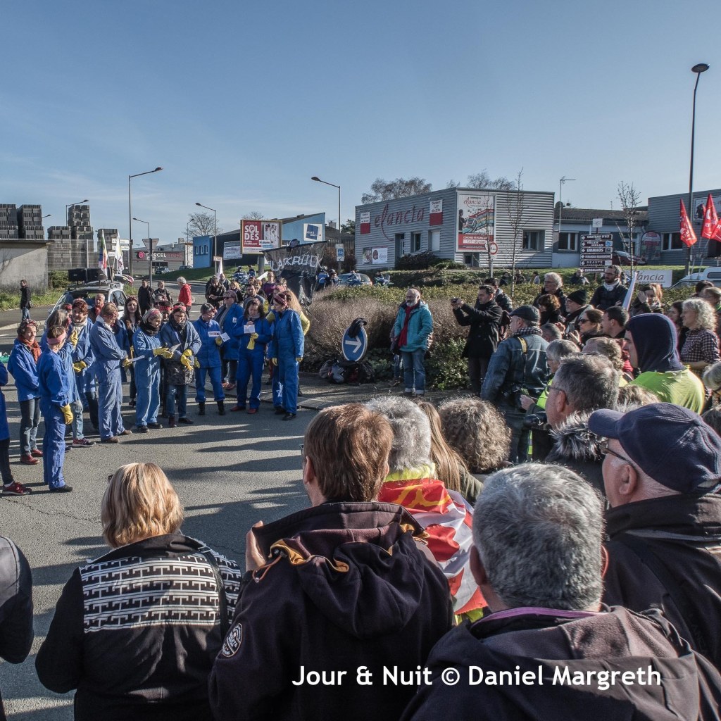 Le rendez-vous était fixé à 12h00 pour commencer par un barbecue sous le soleil… Plusieurs centaines de manifestants se rassemblaient doucement autour des barnums. A 14h00, le cortège de plus de 700 manifestants se mis en route pour traverser la zone commerciale : distribution de tracts et discussion avec les clients de la zone dans un climat bon enfant. Pendant que les « rosies » allaient faire leur chorégraphie dans la galerie d’Auchan, le gros du cortège fit une pause pour attendre leur retour puis repris sa route vers la salle des fêtes de La Chapelle St Aubin où se tenait la cérémonie des vœux du député LREM Damien Pichereau.