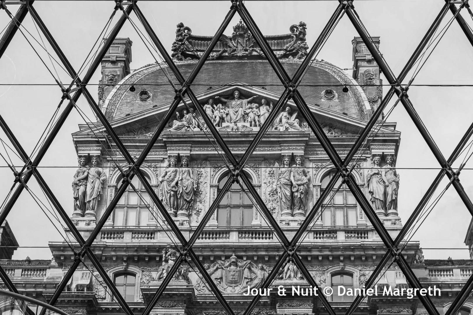 Il y avait dans ma mémoire la pyramide du Louvre. Mon souvenir était en noir et blanc et je ne pouvais pas me défaire de cette image de toile d’araignée qui hantait mes rêves depuis ce jour-là. Une vision depuis l’intérieur de la pyramide.
