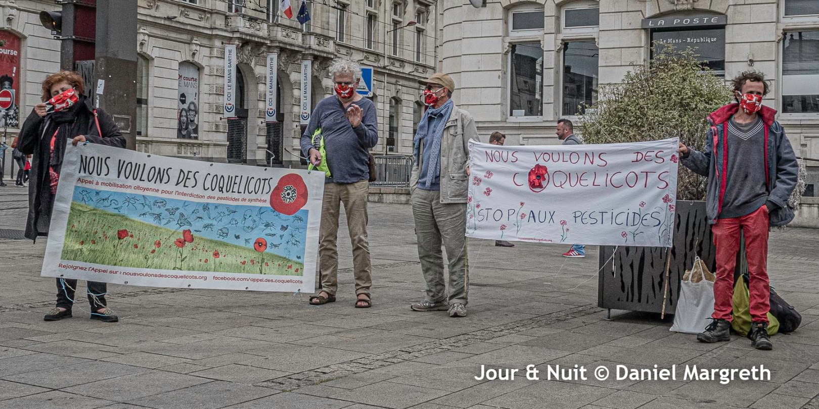 Le déconfinement se poursuit au Mans… Le rassemblement « Nous voulons des coquelicots », qui se déroulait le premier vendredi de chaque mois avant la crise sanitaire du covid-19, a de nouveau eu lieu. Une vingtaine de manifestants masqués se sont réunis vers 18h30 place de la République pour soutenir la lutte contre tous les pesticides. Ce 5 juin, c’est plus de 150 autres rassemblements qui ont eu lieu en France.