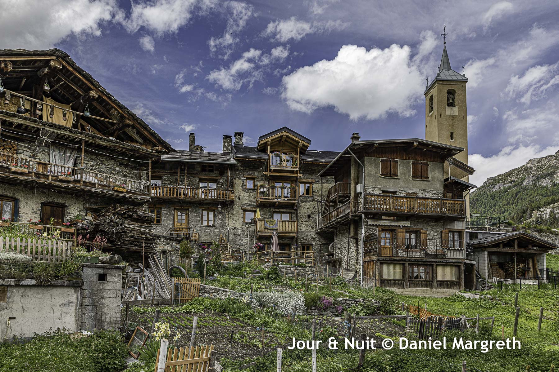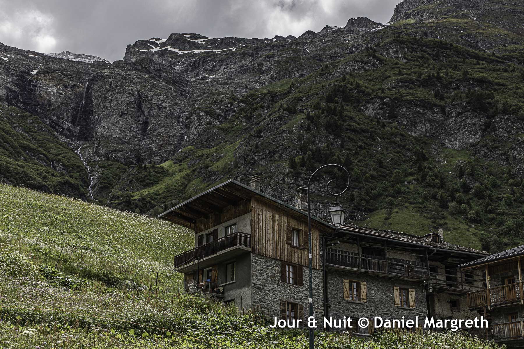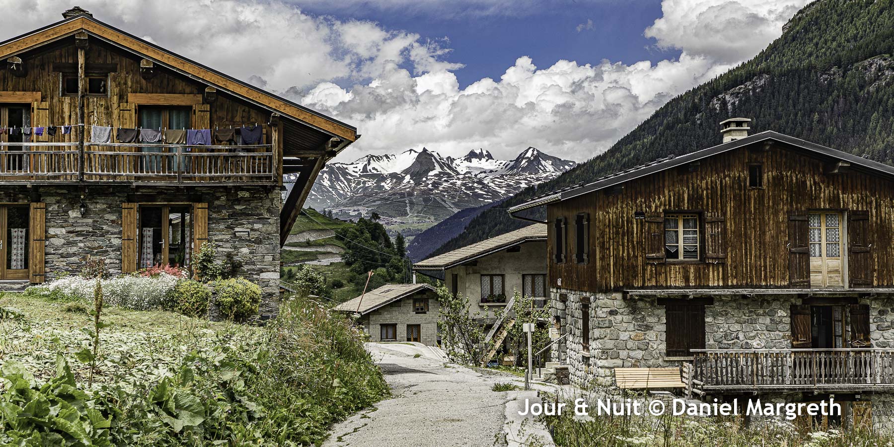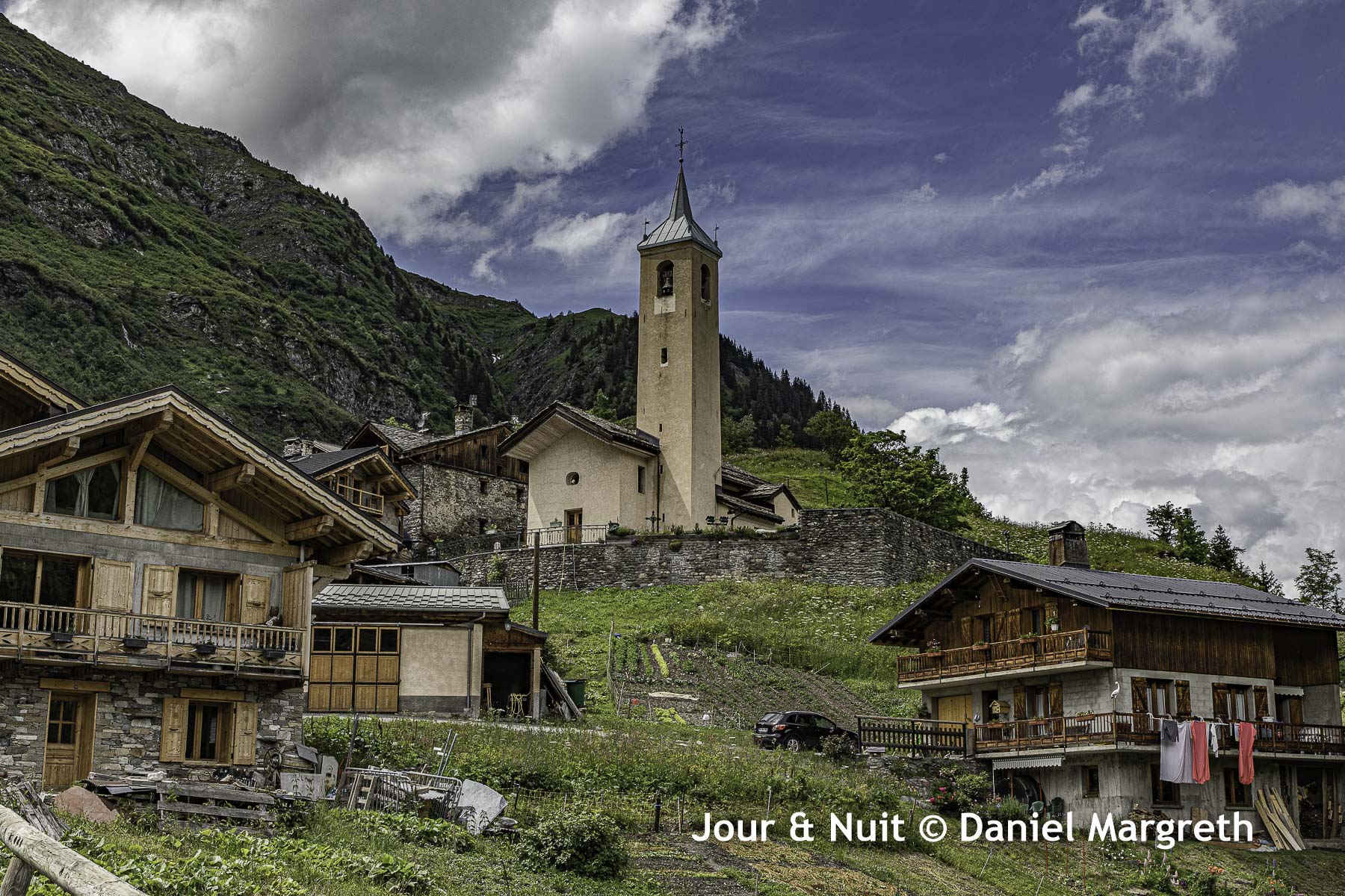 Ici, il s’agit de 2 petits villages, La Savinaz et La Gurraz, accrochés à environ 1600m dans la vallée de l’Isère sous les glaciers de La Gurraz dans le Parc de la Vanoise. Un habitant nous a affirmé qu’au printemps dans les années 60, et à la plus grande joies des enfants qui attendaient le spectacle, des morceaux de séracs du glacier tombaient là où il ne reste plus que les chutes d’eau du torrent…