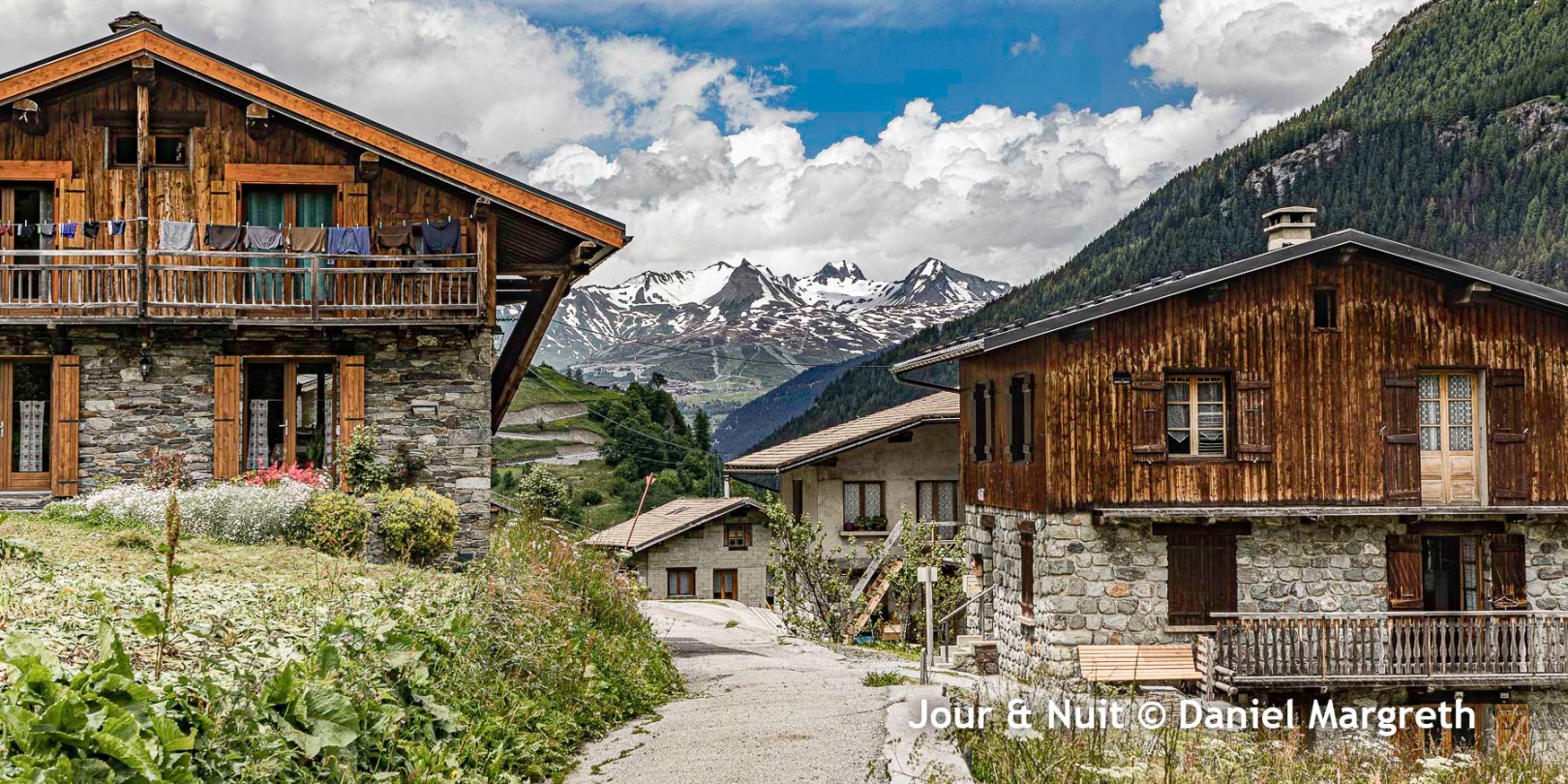 Ici, il s’agit de 2 petits villages, La Savinaz et La Gurraz, accrochés à environ 1600m dans la vallée de l’Isère sous les glaciers de La Gurraz dans le Parc de la Vanoise. Un habitant nous a affirmé qu’au printemps dans les années 60, et à la plus grande joies des enfants qui attendaient le spectacle, des morceaux de séracs du glacier tombaient là où il ne reste plus que les chutes d’eau du torrent…