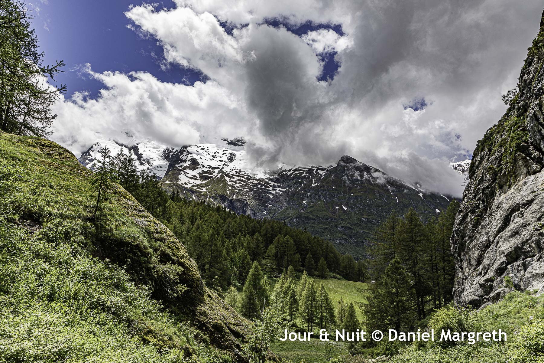Si on lève les yeux pour observer le Mont Pourri, qui culmine de l’autre côté de la vallée à 3423 m d’altitude, on peut observer ses glaciers, ici celui de La Gurraz…