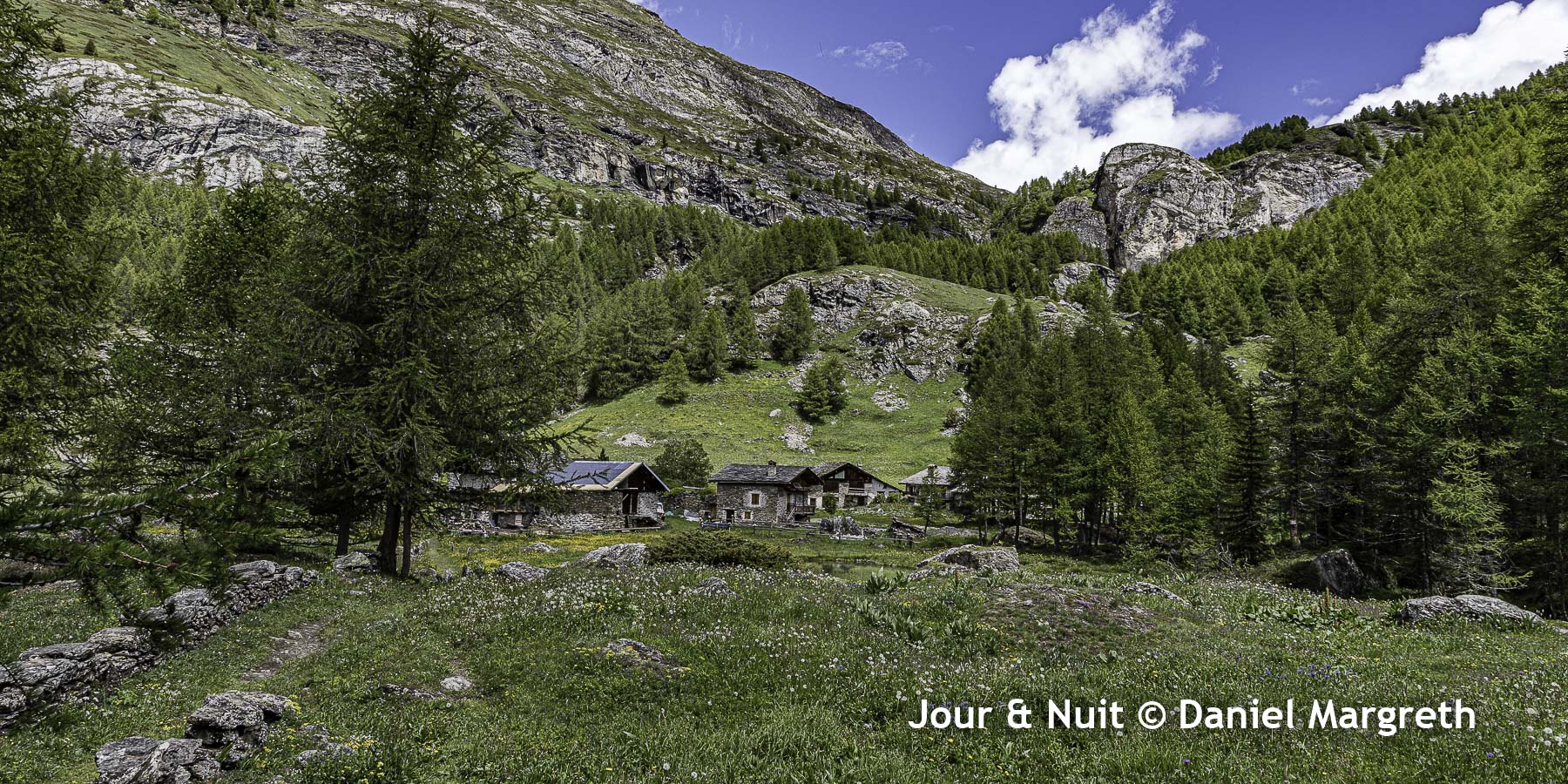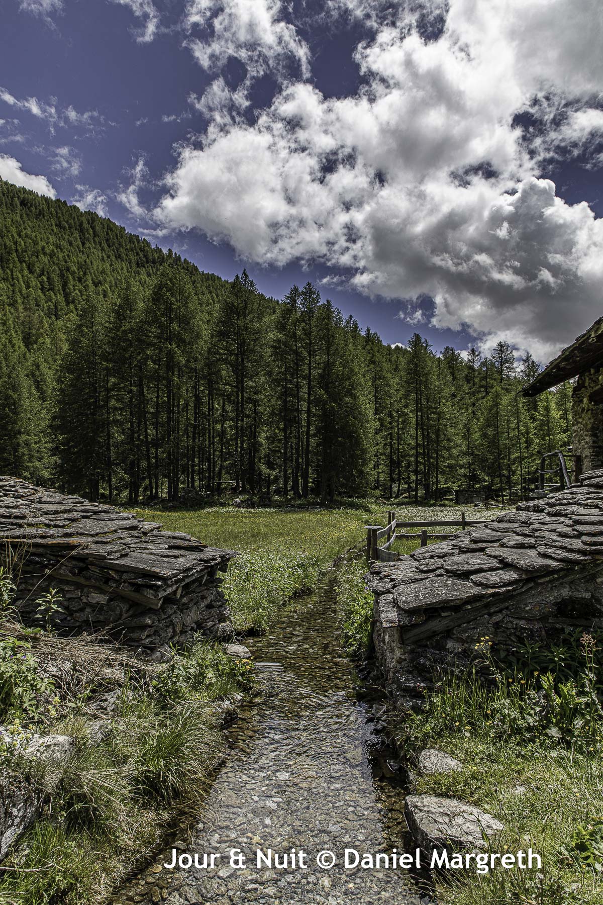Il suffit de continuer l’ascension et de suivre une paroi rocheuse, d’ailleurs équipée pour faire de l’escalade, pour arriver dans un magnifique vallon à 1874 m d’altitude et découvrir le village de Le Monal avec les murets de pierre, les chalets en pierre et en bois, les petits étangs, la chapelle St Clair et le ruisseau du Clou qui le traverse… Un vrai régal pour les yeux… Le silence qui règne ici de même que l’absence de touriste, du fait de l’isolement du village, est tout à fait agréable…