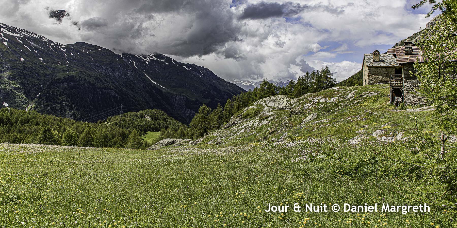 Le chemin qui part depuis l’entrée de Le Chenal nous emmène assez rapidement au tout petit village de La Combaz avec une vue sur le Mont Pourri…