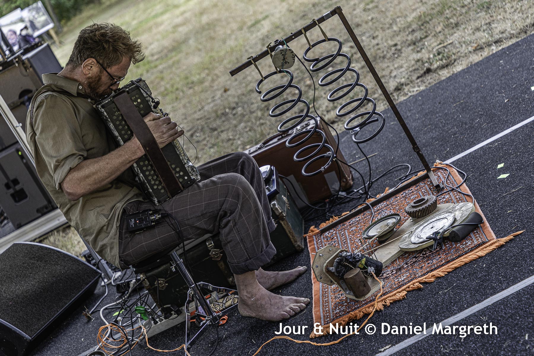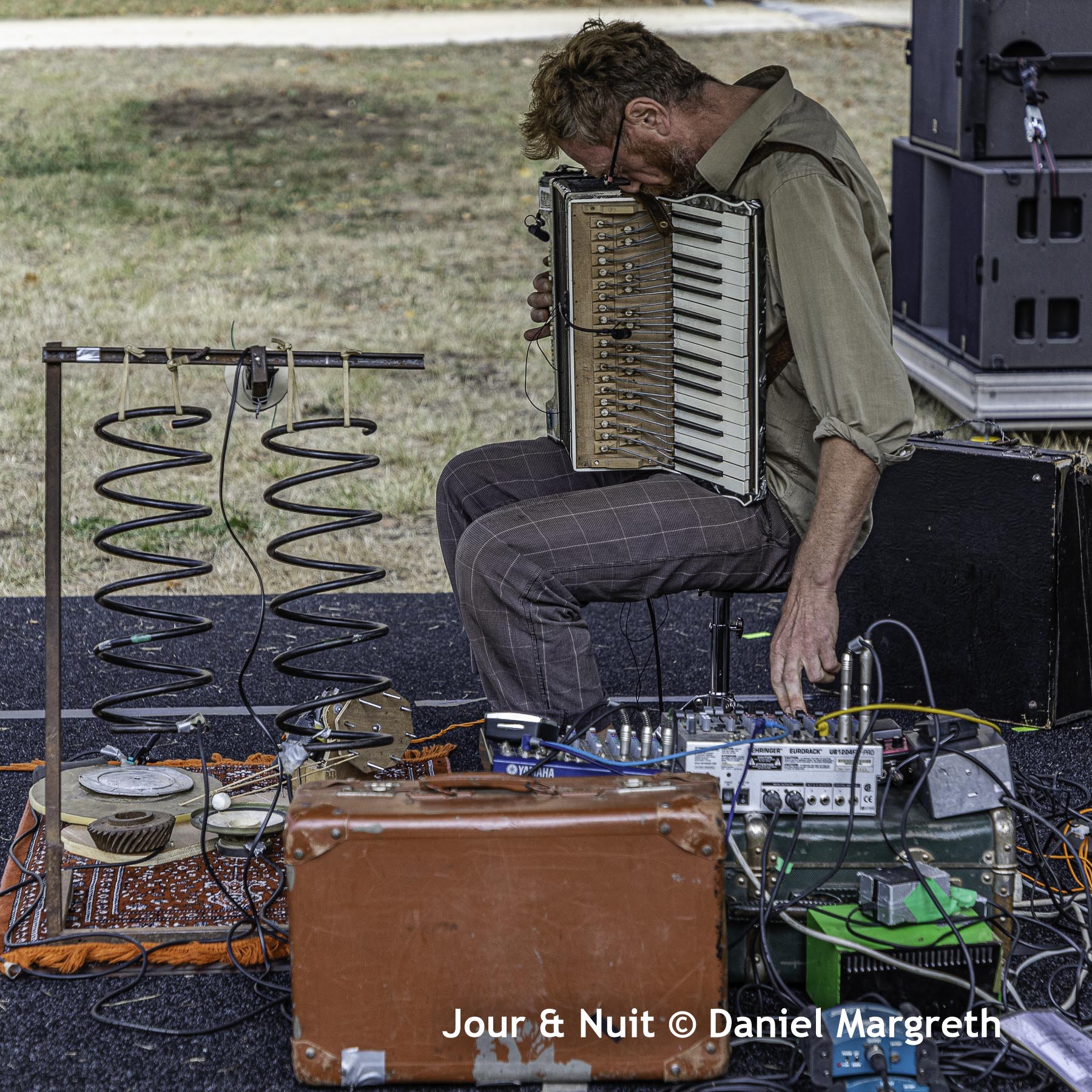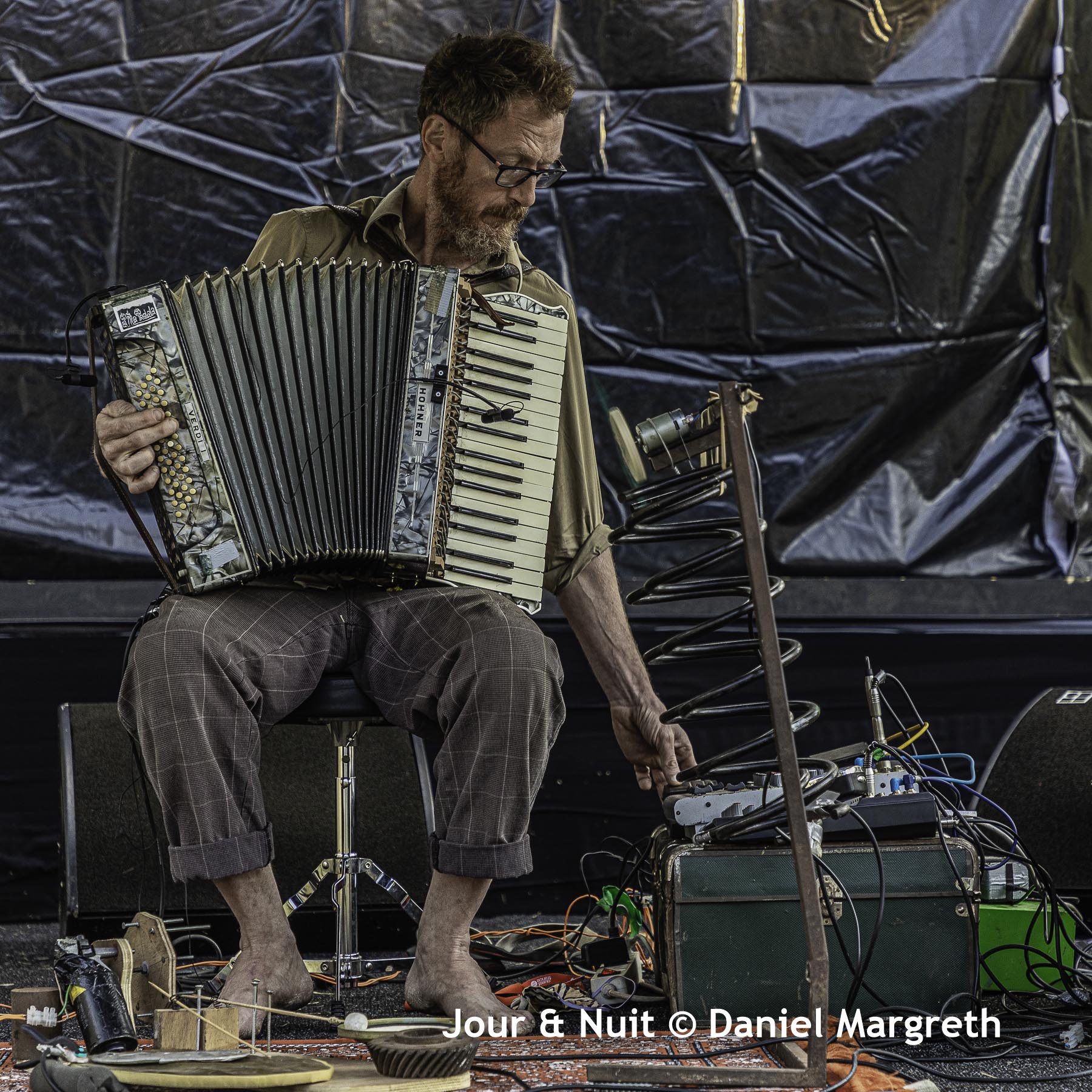 L’accordéon, il joue ça avec une pédale de delay accompagné de ressorts et de bidouilles pour rythmer sa mélodie.