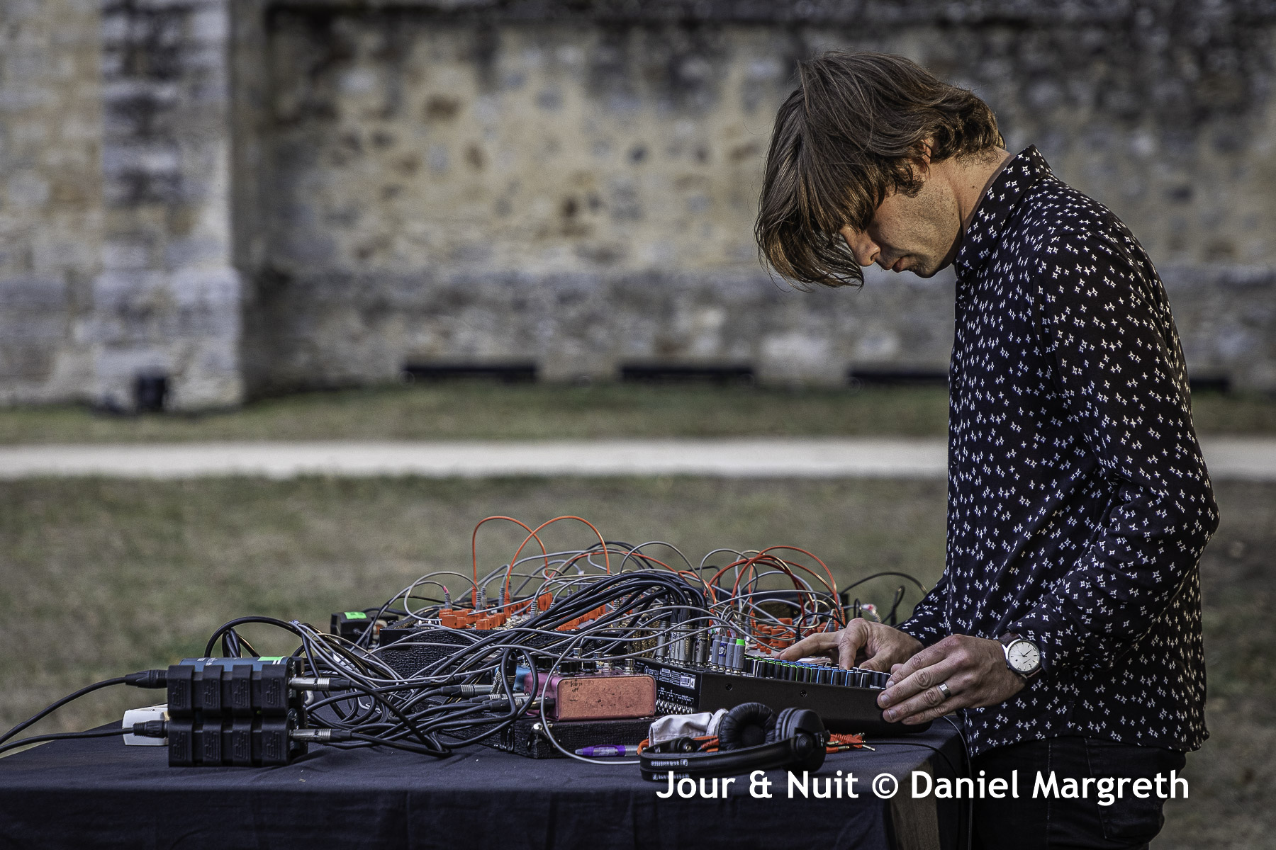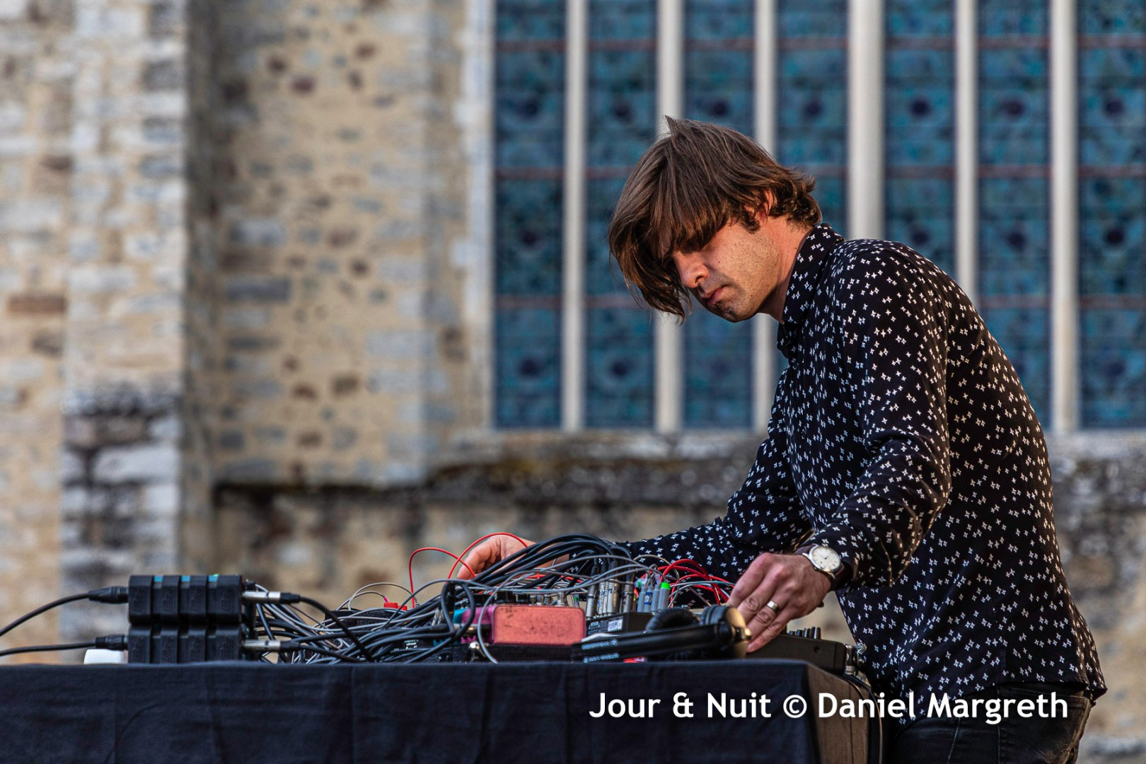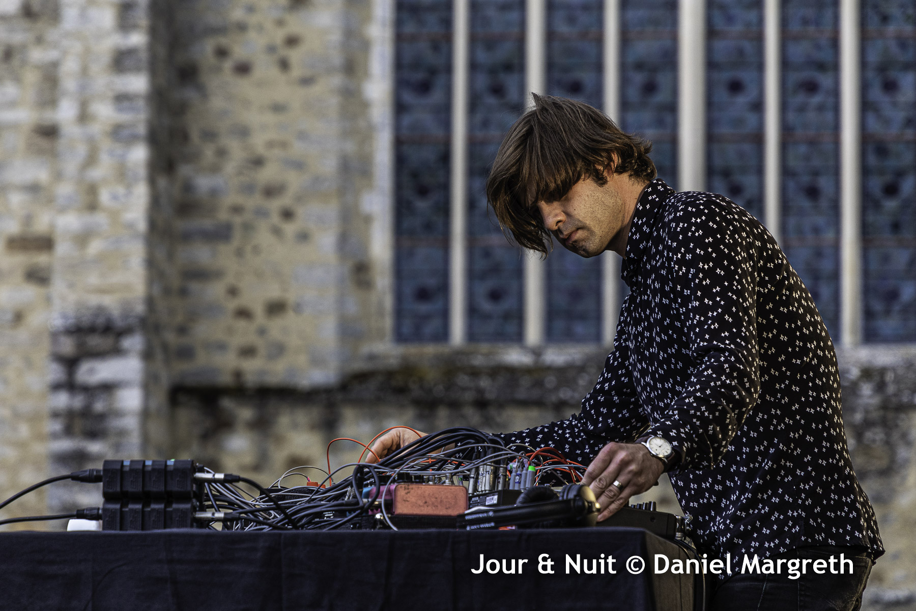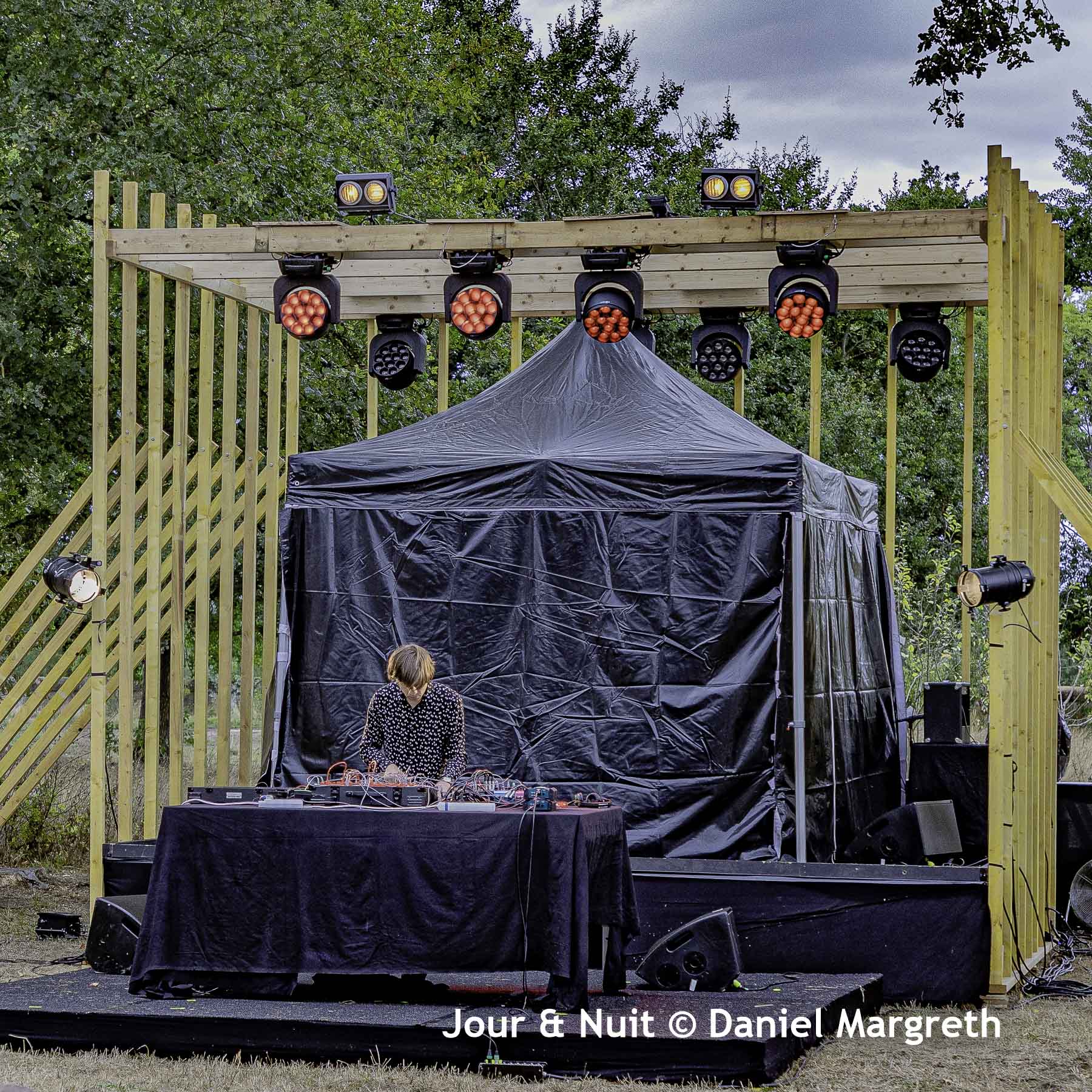 Thomas Poli lui succéda sur scène. Gros changement d’ambiance… Ici on rentre dans un son fluide, des sonorités déliées et hypnotiques qui s’organisent doucement grâce à un matériel électronique et des câbles joyeusement entremêlés… Il ne reste plus qu’à fermer les yeux pour rêver que le soleil est de retour et que le covid-19 est un vieux cauchemar! Merci Thomas pour ce moment de grâce.
