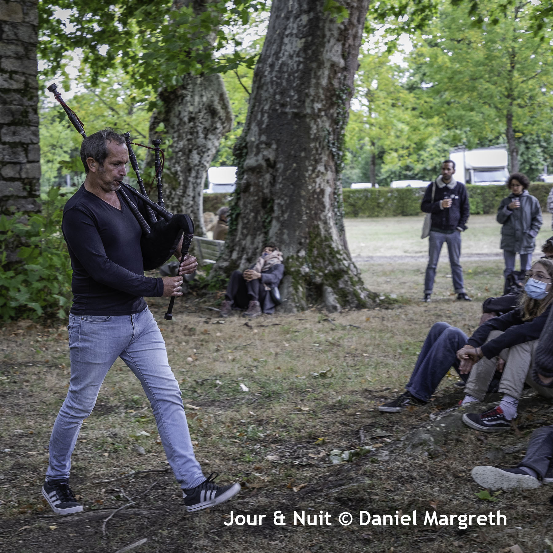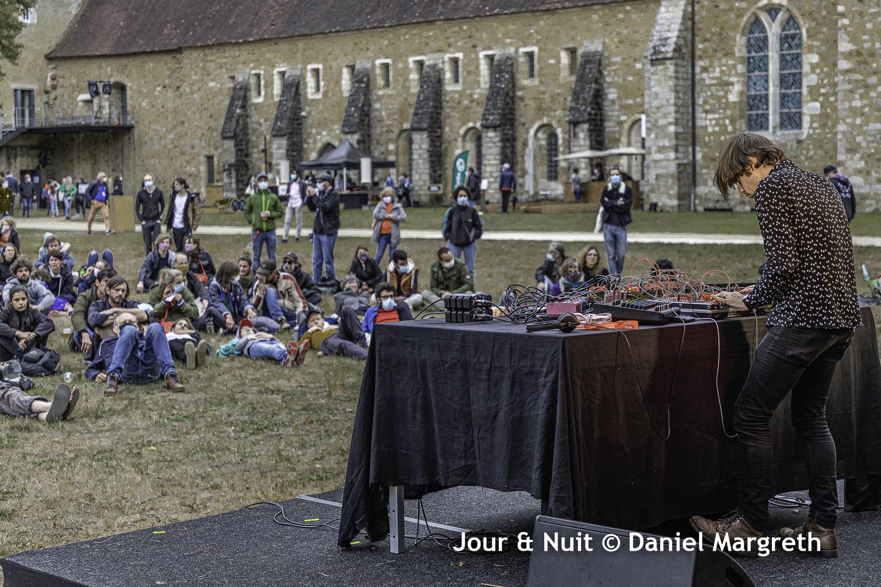 Ma sieste masquée dans ce festival en situation covid-19 ne ressemble que peu aux siestes des années précédentes… Pas de transat, pas de restauration, pas de concert dans l’abbaye, tout se déroule sur la pelouse arrière avec en plus un temps automnal, humide et frisquet. Heureusement, la programmation était une fois de plus récréative et audacieuse comme je l’aime!