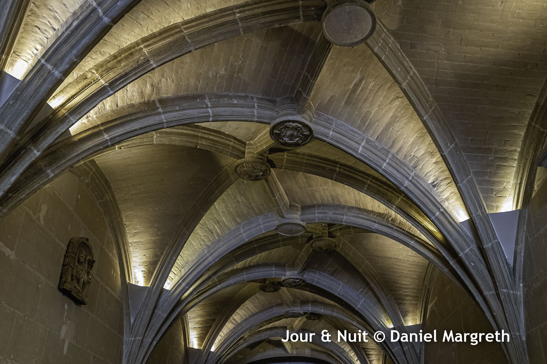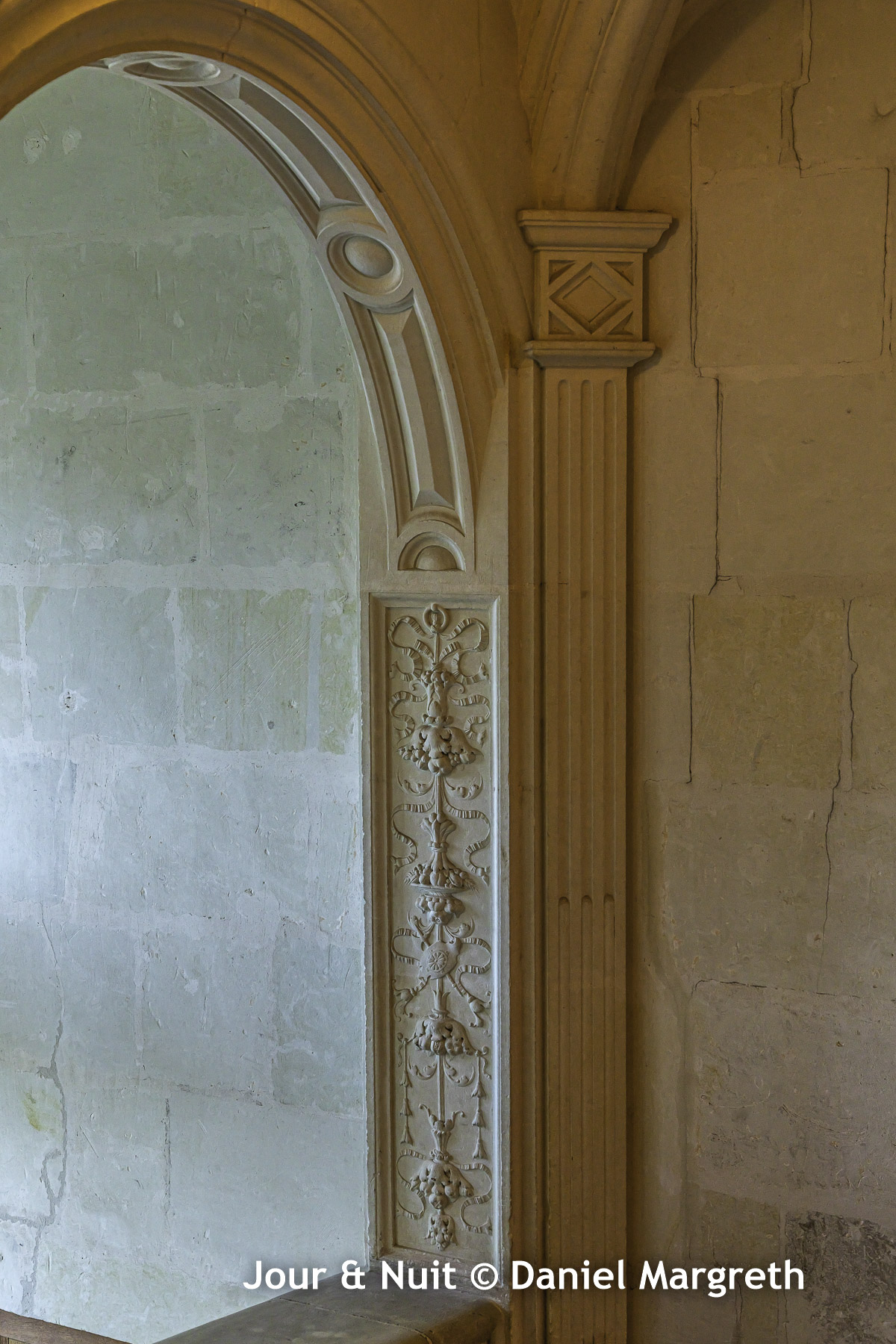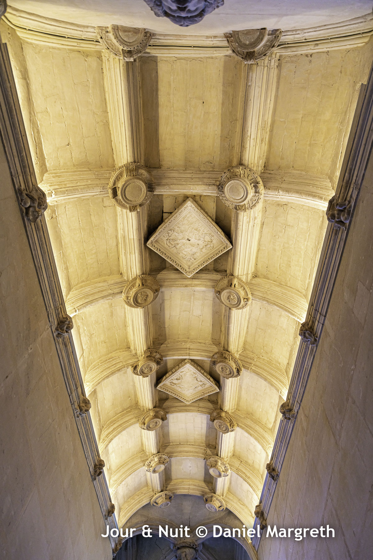 Le vestibule est couvert d’une série de voûtes d’ogives dont les clefs, décalées les unes par rapport aux autres, forment une ligne brisée.