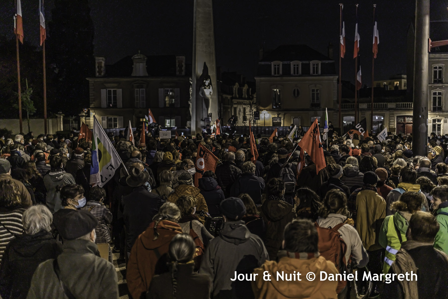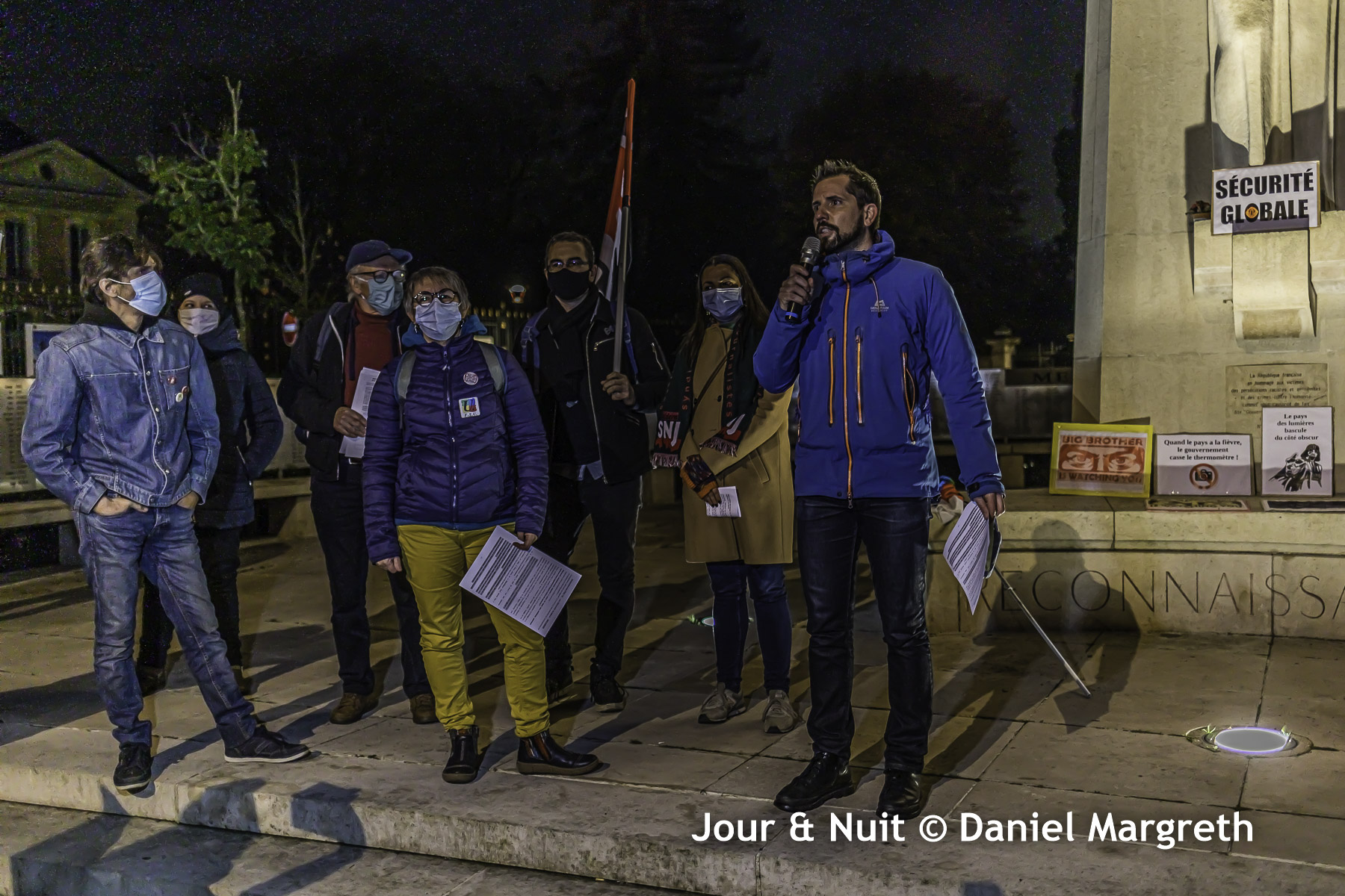 A nouveau dans la rue, les opposants à la proposition de loi Sécurité Globale, se sont retrouvés devant la Préfecture du Mans mardi soir 24 novembre 2020 à l’appel de l’UCL (Union Communiste Libertaire) de la sarthe, la CNT 72, le Collectif Antifasciste de la Sarthe, le Collectif Anti-répression 72, la Libre Pensée de la Sarthe, le NPA72, la FSU 72, le SNUipp-FSU de la Sarthe, l’ UNEF Le Mans, ANV COP21 Le Mans, ATTAC 72, la Ligue des droits de l’Homme Le Mans, la CGT des territoriaux de la ville et du CCAS d’Allonnes, la CGT EPSM de la Sarthe et Le Mans Collectif Citoyen ainsi que Le club de la presse du Maine (association de journalistes et correspondant-es de presse sarthoise).