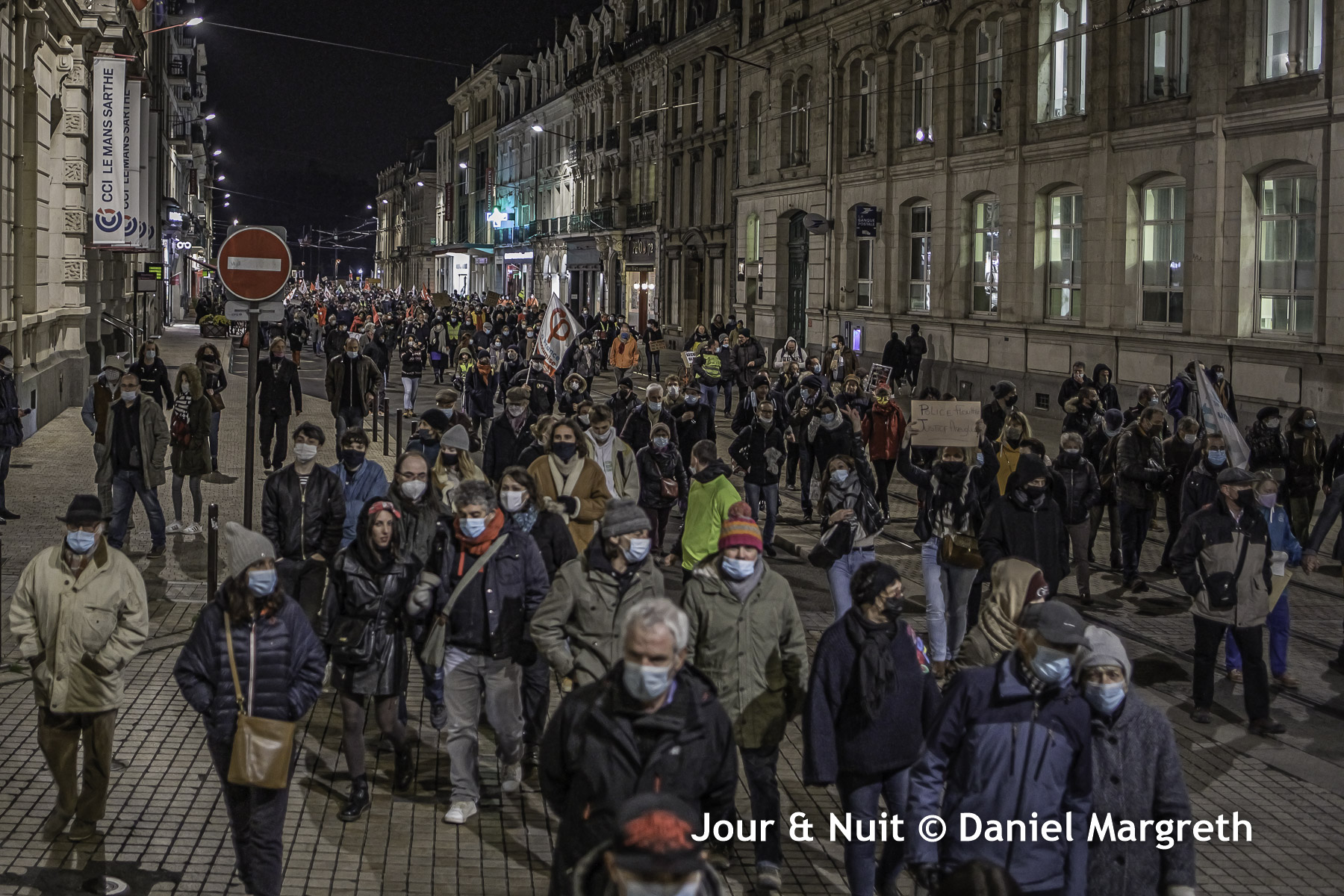 Plus de 1000 manifestants se sont rassemblés devant la Préfecture du Mans ce mardi 1er décembre 2020 à l’appel du collectif de la Sarthe « Pour le retrait de la loi sécurité globale »
