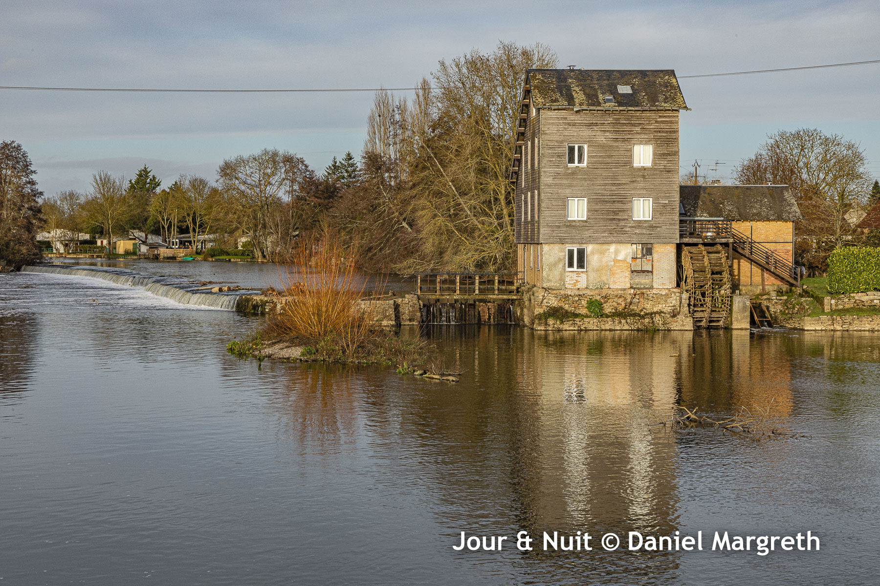 Ce moulin date du XIXème siècle. Il était composé de deux roues et barrait le cours de la Sarthe au lieu dit Montreuil sur la commune de Neuville sur Sarthe. Il fut ravagé par un incendie en 1921 et reconstruit en 1926 sous son aspect actuel fait de briques et de bois. Ce moulin a écrasé les grains de blé jusqu’à la fin 1985, date à laquelle il a cessé de fonctionner.