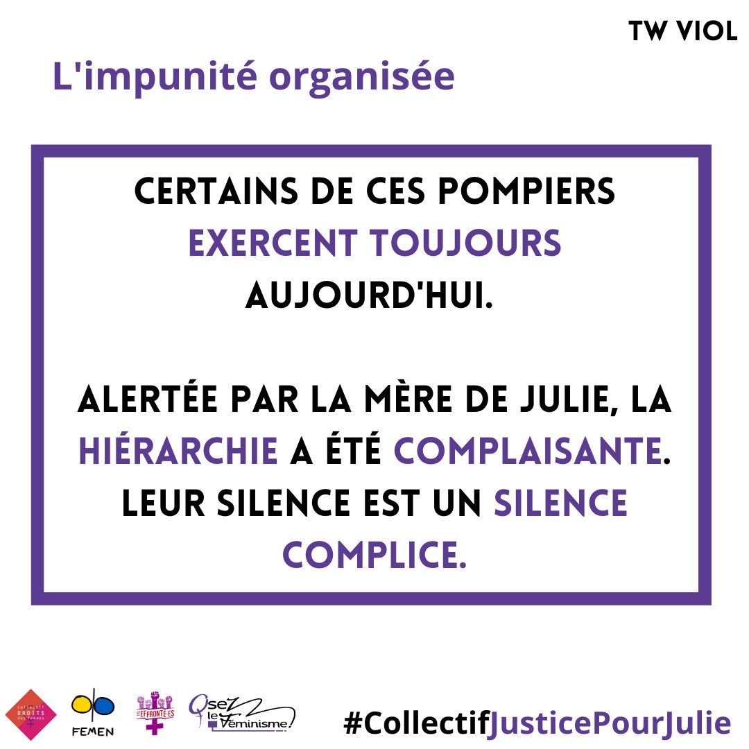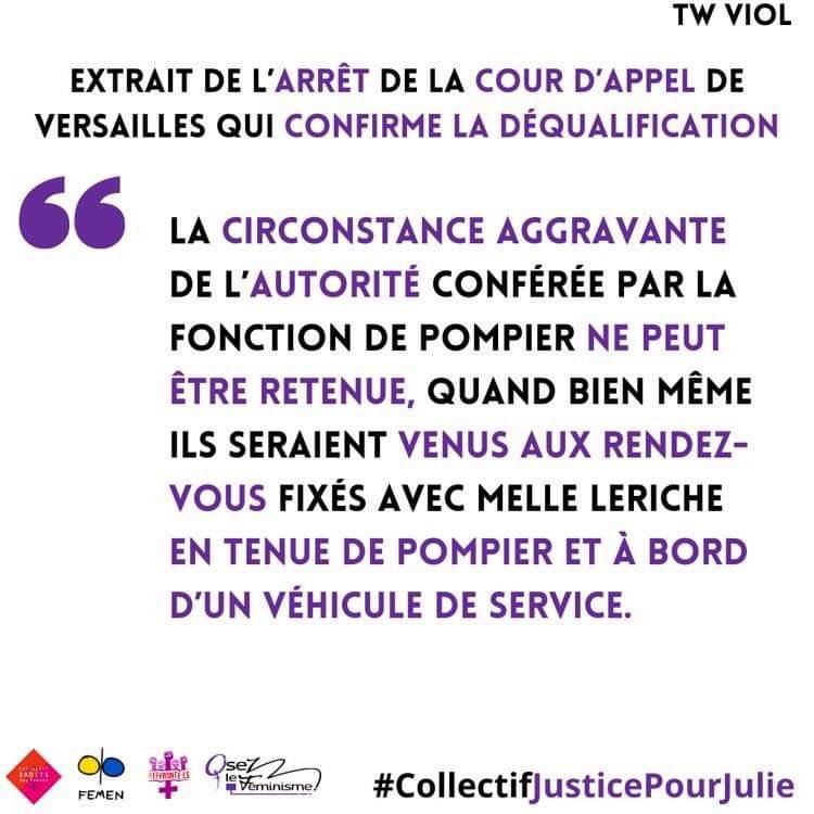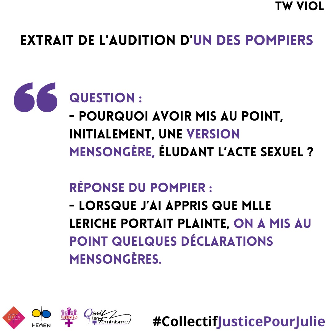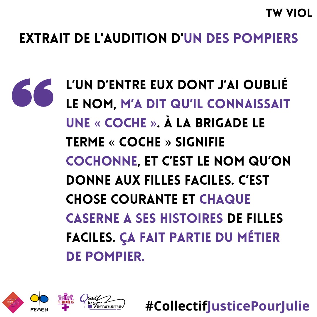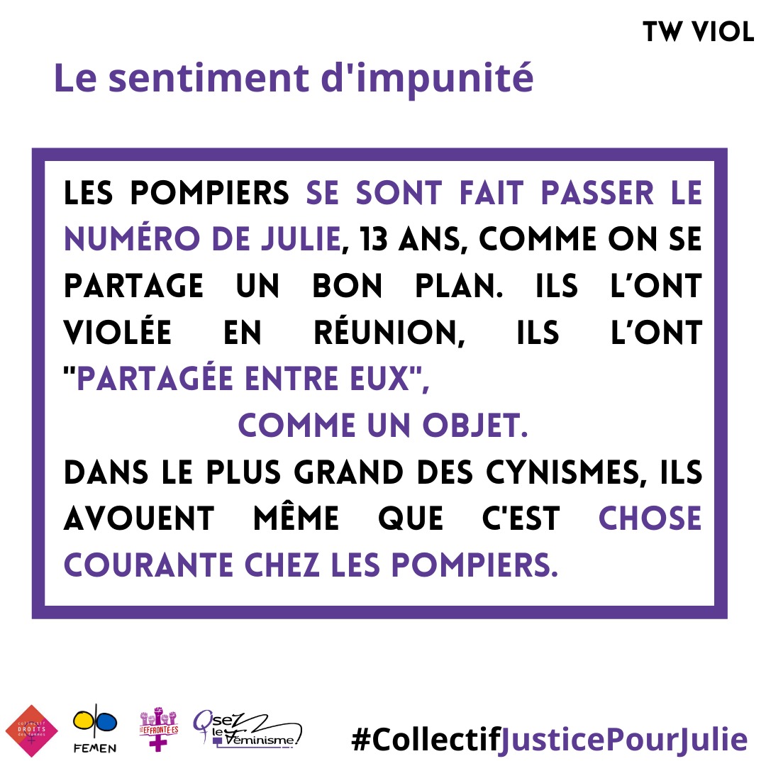 Alors que des viols commis par 20 pompiers de Paris, subis par Julie entre 13 et 15 ans, ont été déqualifiés en atteinte sexuelle, un large ensemble de militant·e·s et de représentant·e·s d’associations féministes et de lutte contre la pédocriminalité dénoncent un grave «déni de justice».