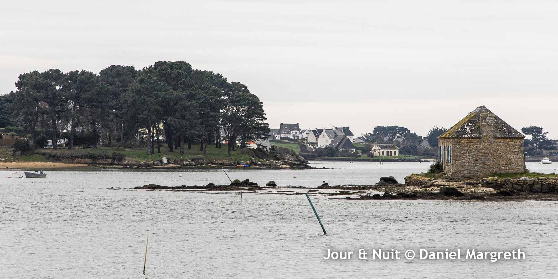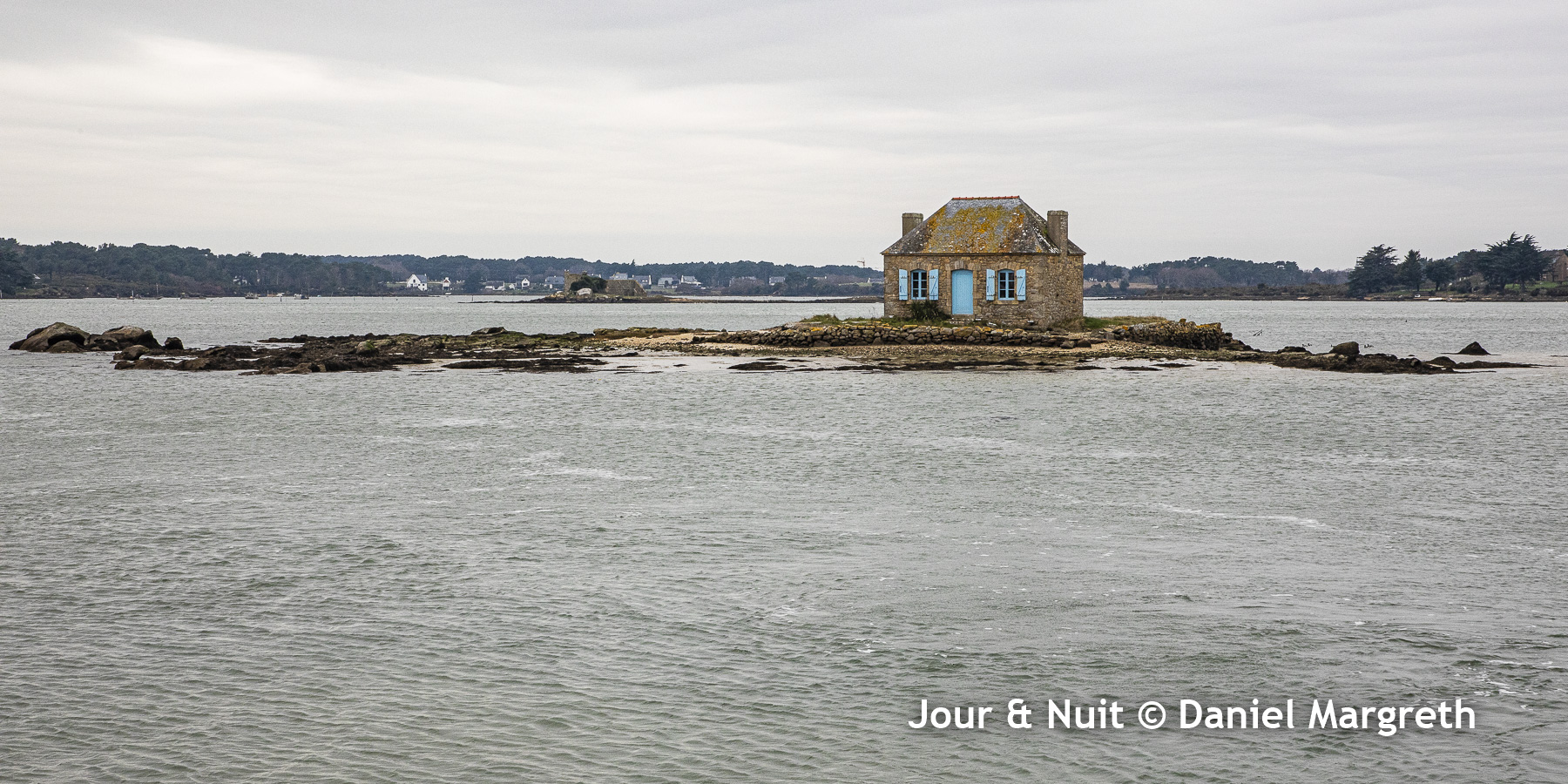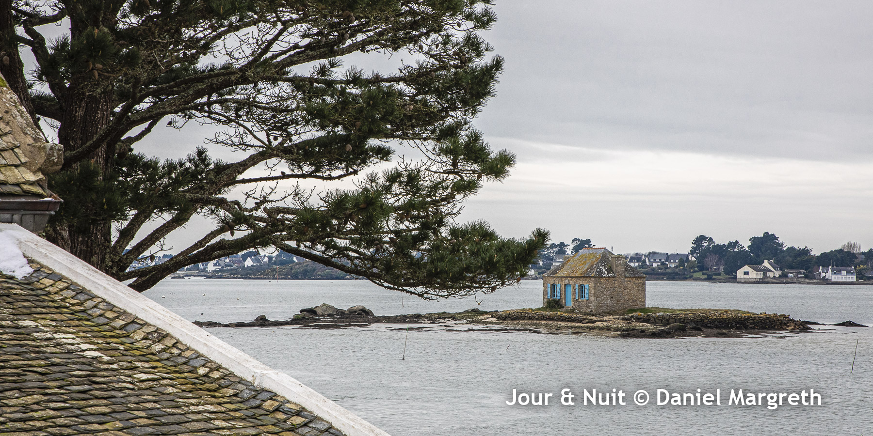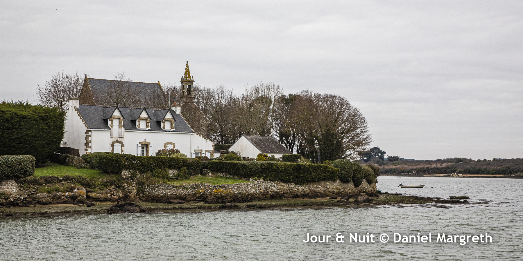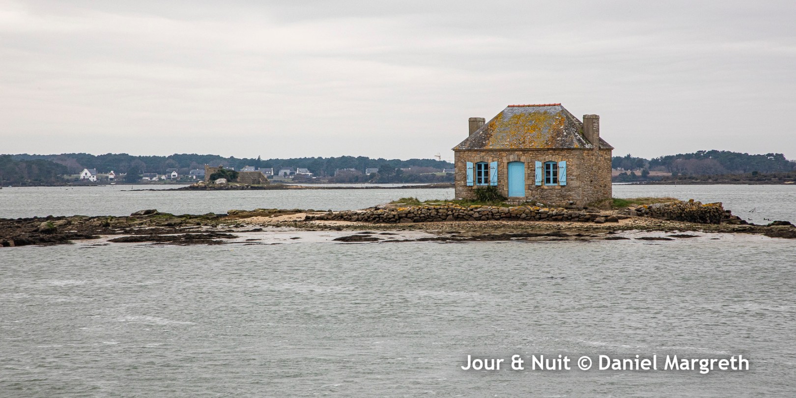Nichée au creux de la ria d’Etel, l’île de Saint Cado est reliée par un pont-digue à son village sur la commune de Belz dans le Morbihan. A côté d’elle se trouve l’îlot de Nichtarguér sur lequel trône la petite maison aux volets bleus qui est sur toutes les cartes postales…