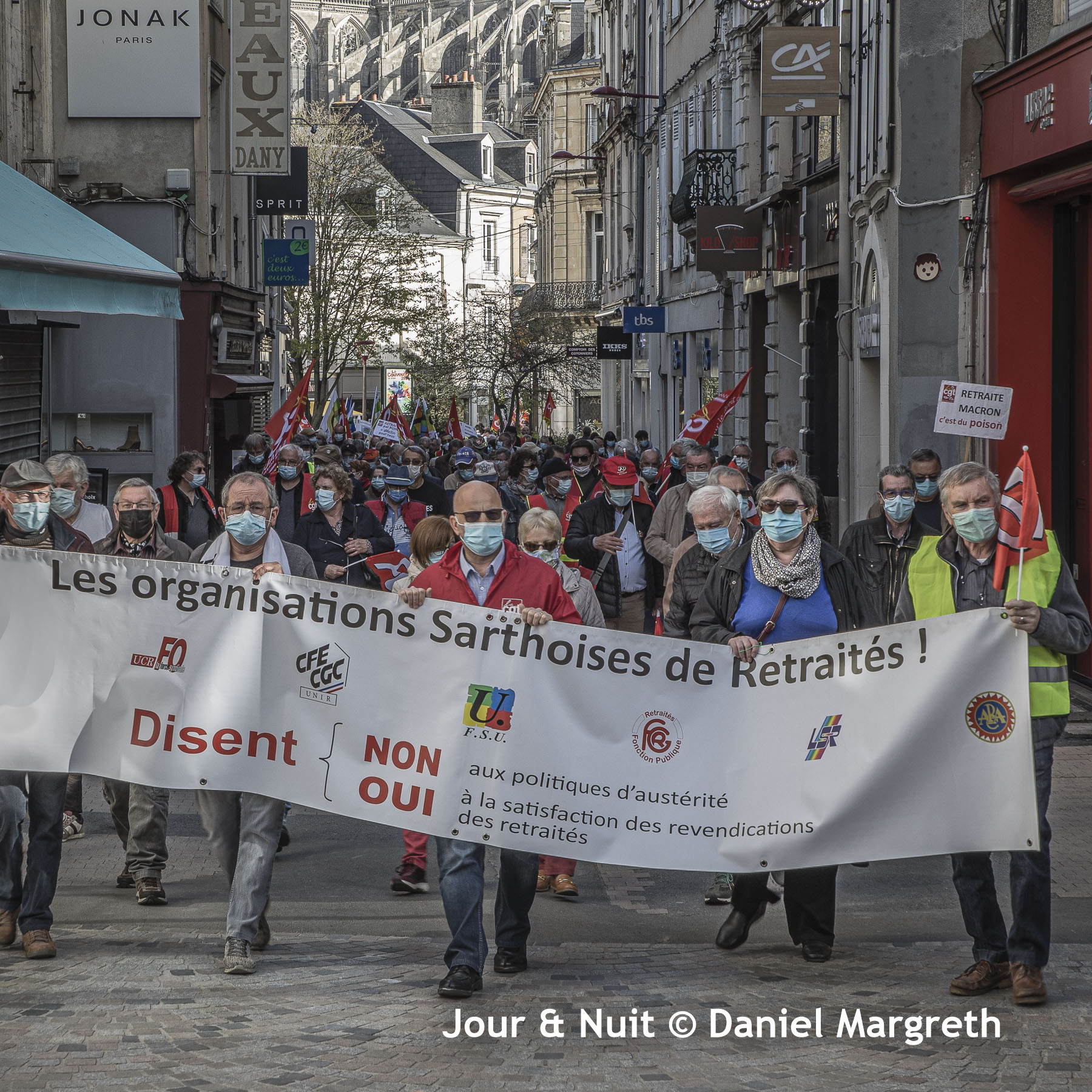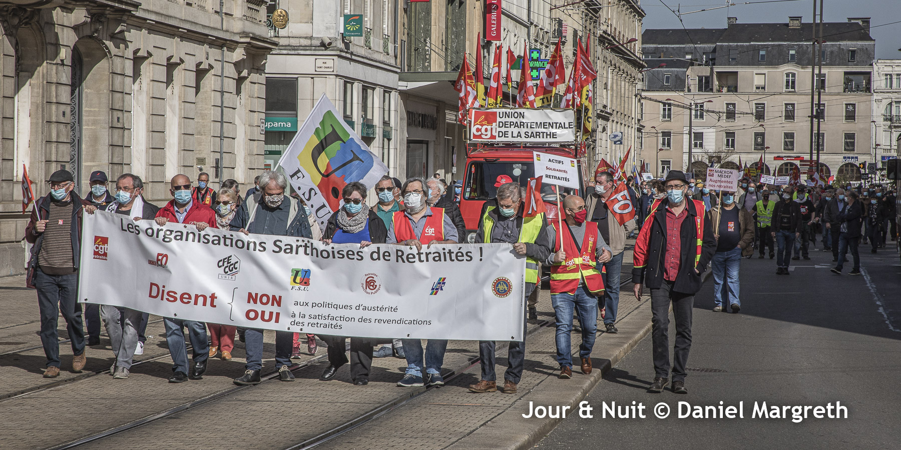 Ce matin, à l’appel de 7 organisations syndicales et associatives sarthoises de retraités (CGT, FO, CFE CGC, FSU, FGR-FP, LSR et ARAC), c’est plus de 350 manifestants qui se sont mobilisés place des Jacobins au Mans, malgré la situation sanitaire à laquelle ils paient un lourd tribut, pour dire leur mécontentement et leur colère face au gouvernement qui essaie de les faire passer pour des privilégiés et continue sa politique de diminution de leurs pensions.