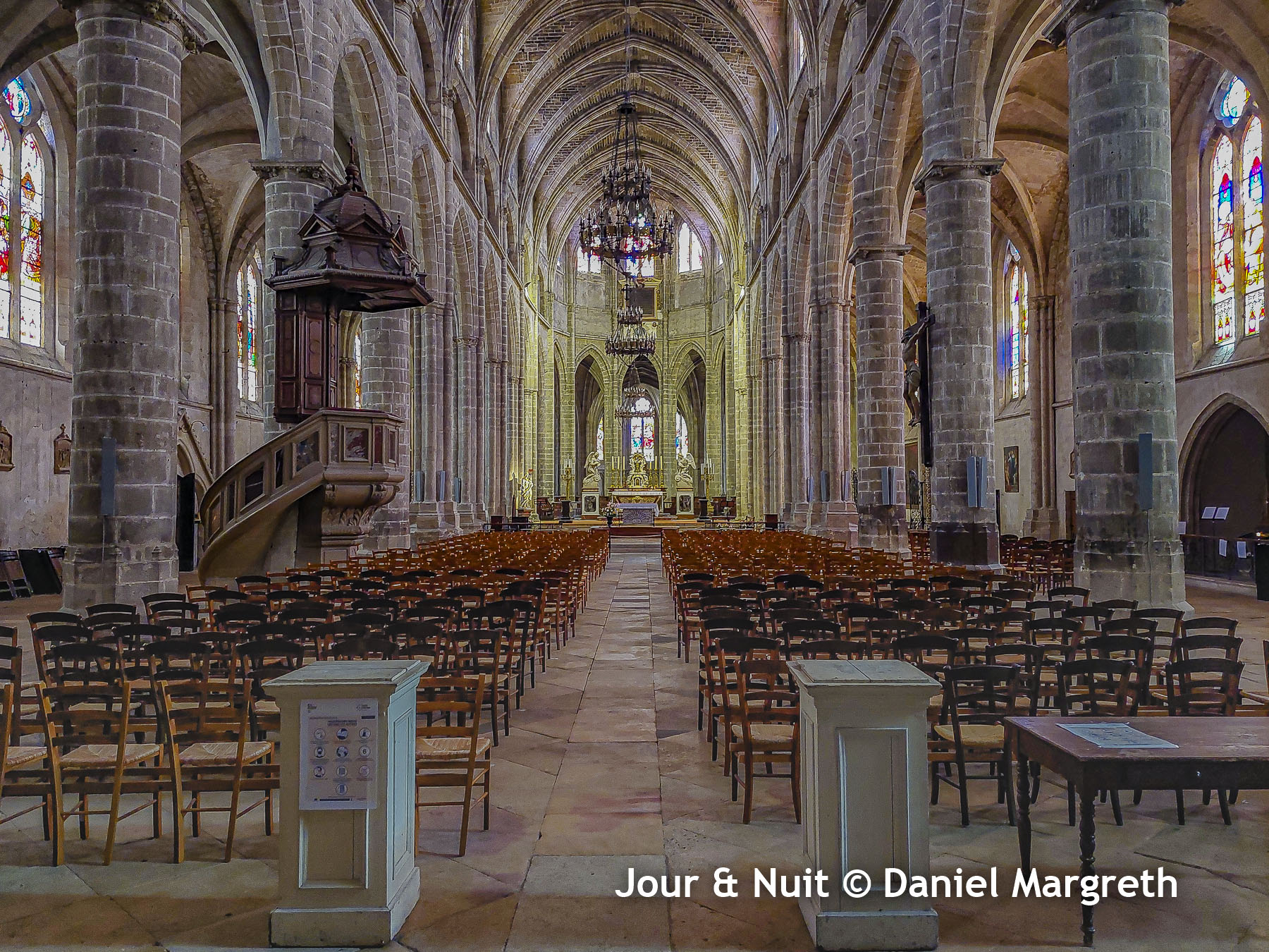 La cathédrale a été édifiée au XIIIème et XIVème siècles sur le modèle des grandes cathédrales gothiques du nord de la France. Elle a été grandement dévastée par les Huguenots mais les portails ont été épargnés… Le portail central est consacré au jugement dernier et à l’histoire de saint Jean-Baptiste. La nef est étroite et longue offrant une magnifique perspective.