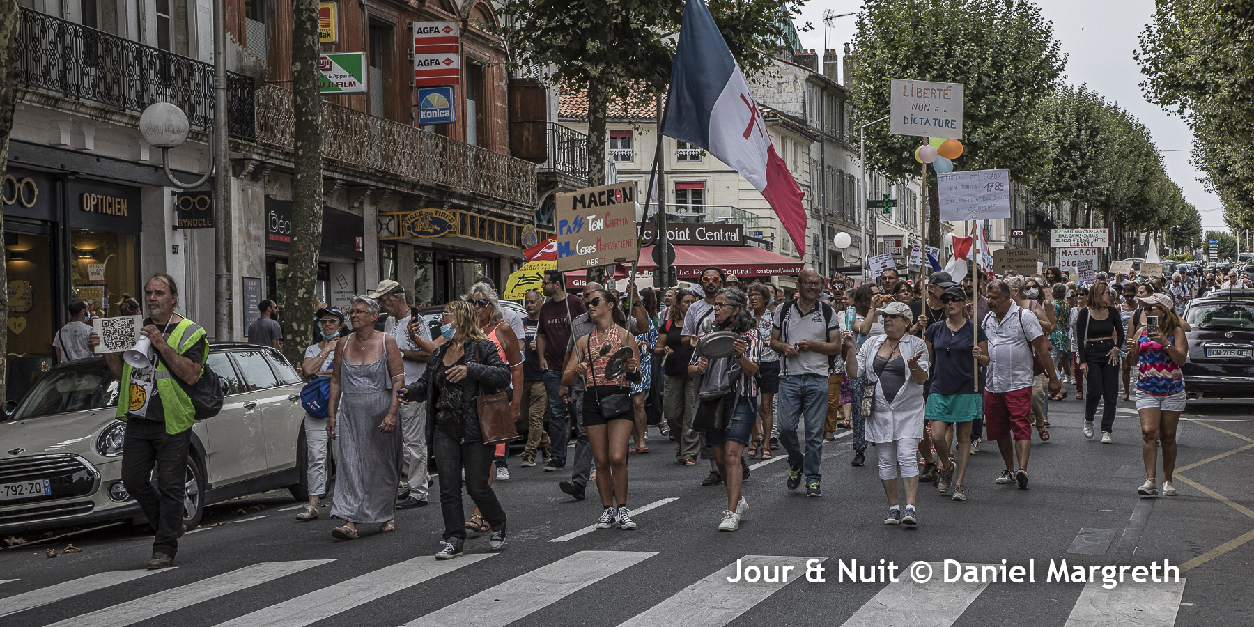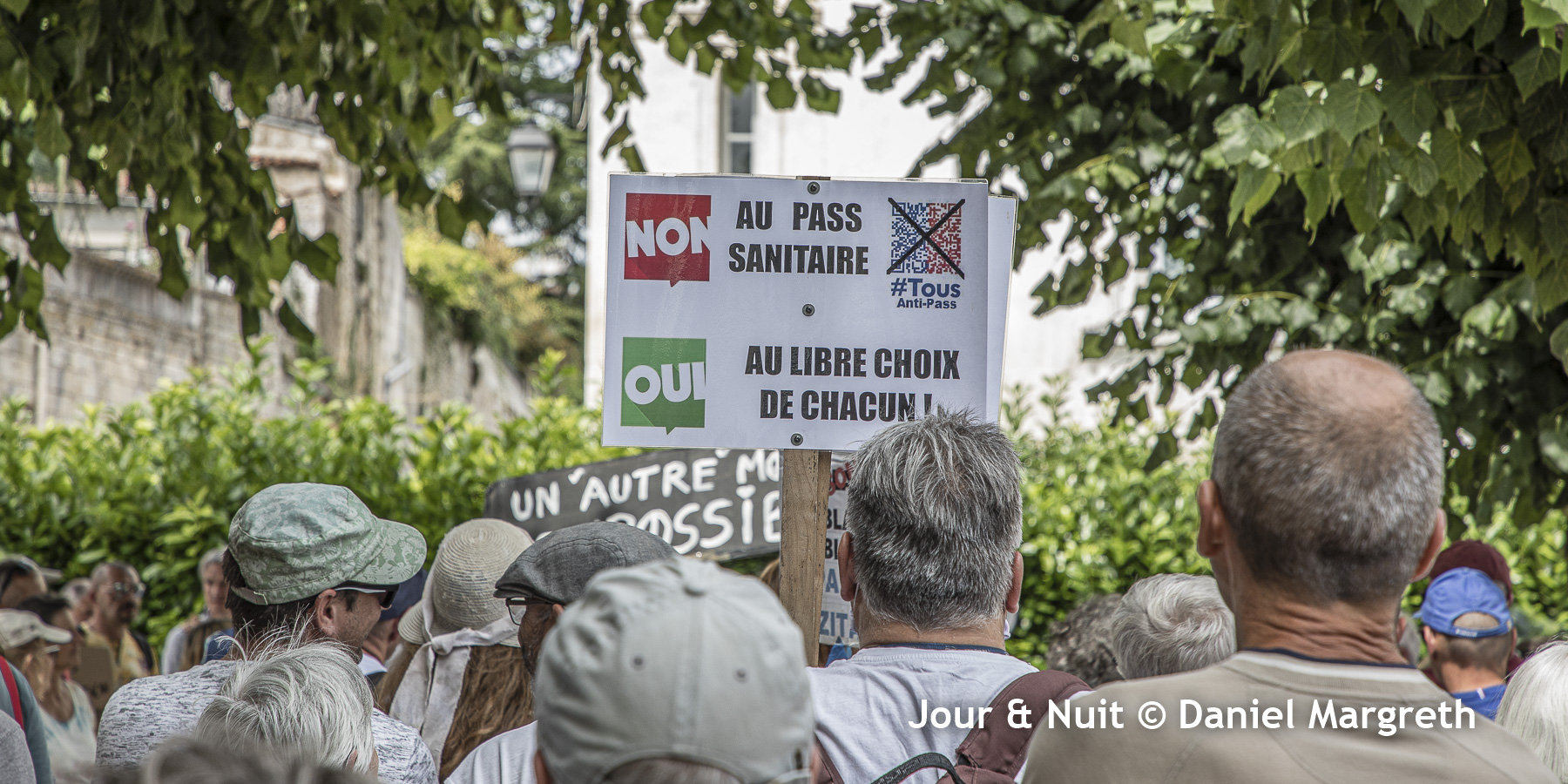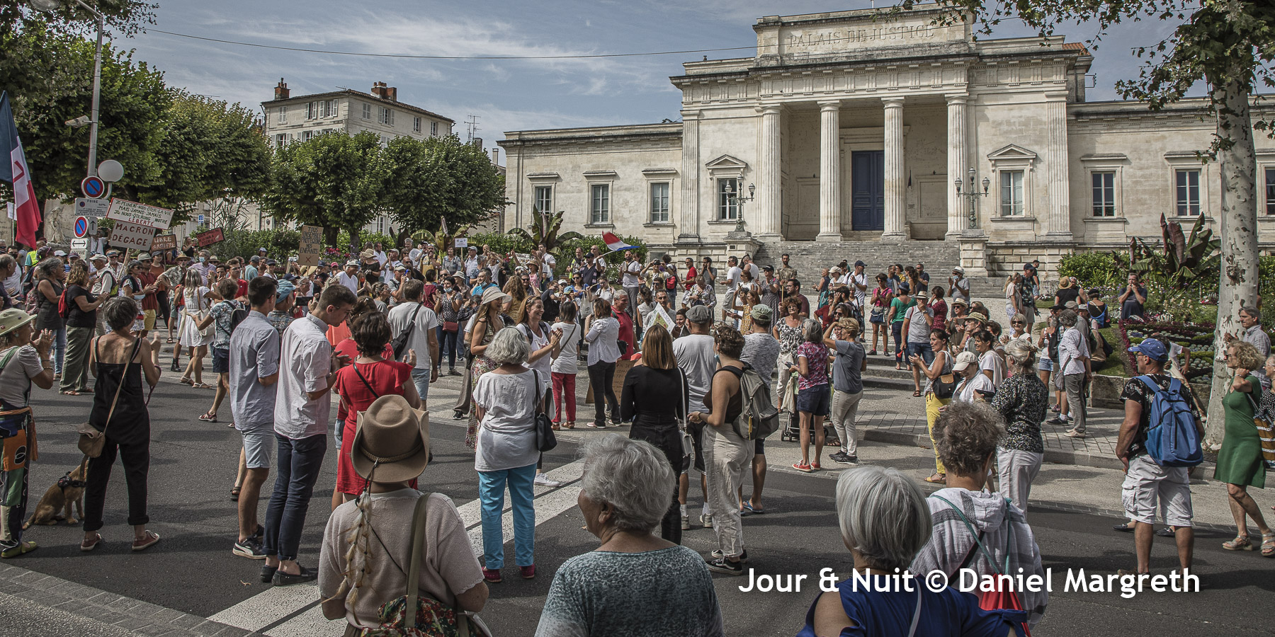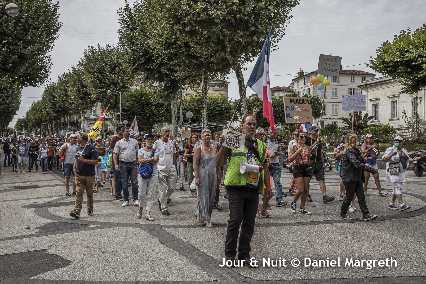 Samedi 21 août 2021 à Saintes, il étaient 400 à dire « Non au Passe Sanitaire » et à manifester dans les rues de la ville après un rassemblement devant le palais de Justice vers 14h00.