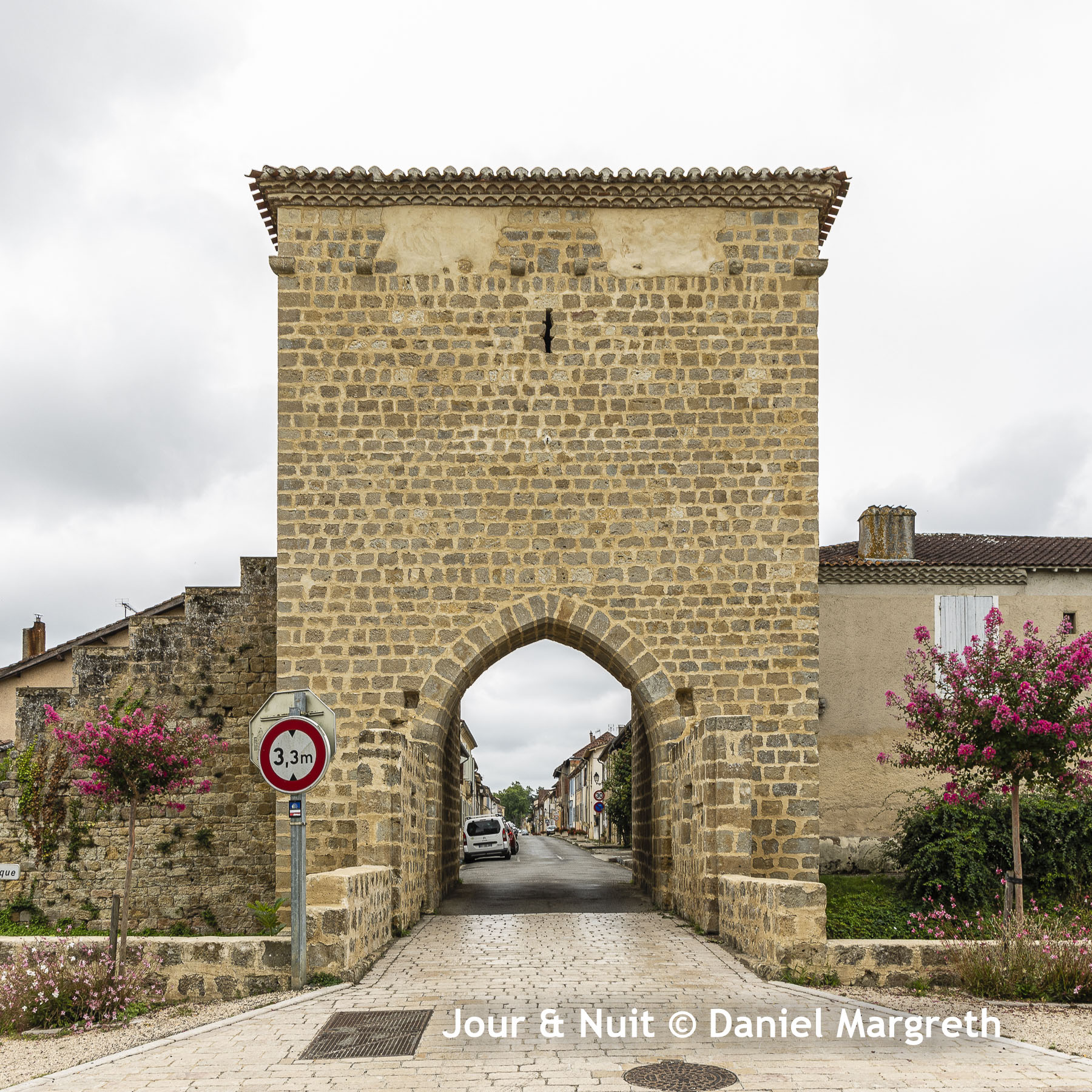 On accède à la bastide par un pont qui était à l’origine un pont-levis aujourd’hui remplacé par un pont en pierre d’une unique arche en arc brisé. Une tour-porte est toujours présente derrière le pont (à l’origine la bastide en possédait 5). La bastide était entourée de puissants remparts qui ont été démantelés par Richelieu, comme toutes les places fortes, au XVII ème siècle et de douves pour la défendre.