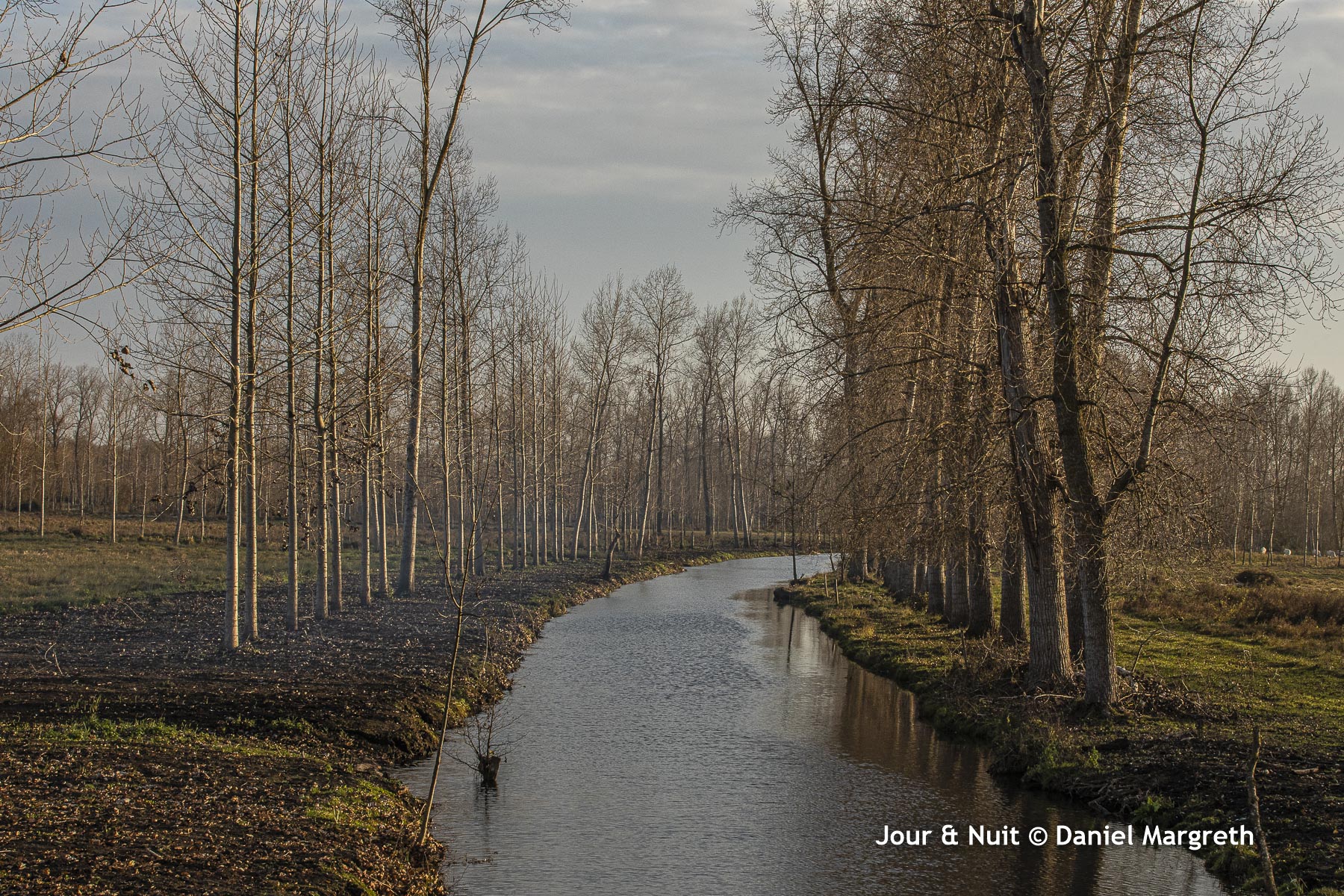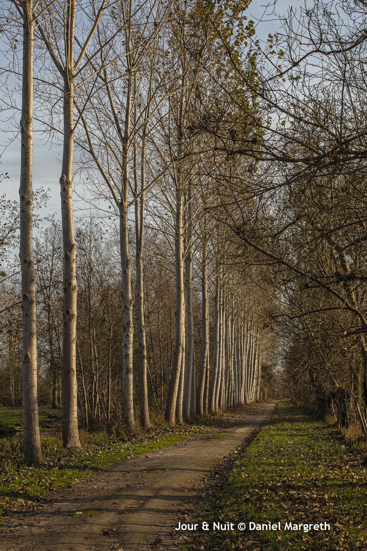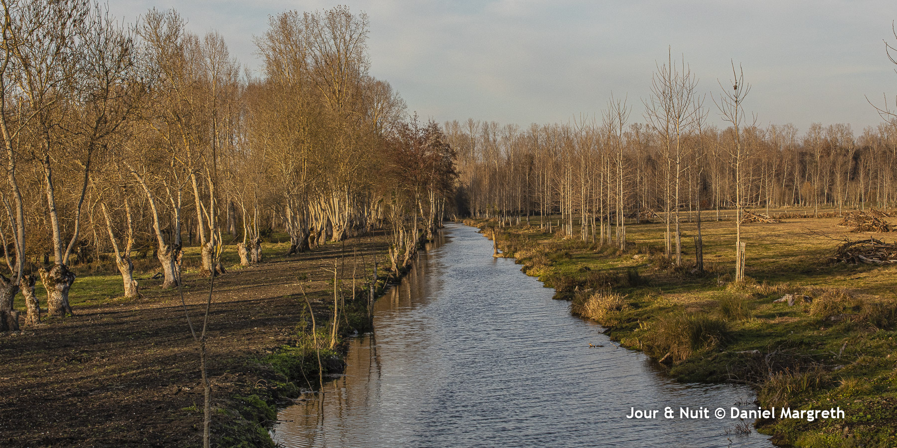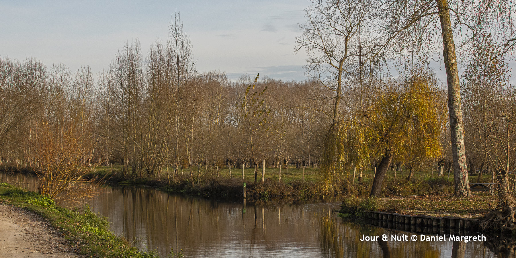 La fin d’après-midi en automne, c’est le moment où le soleil est bas et éclaire encore d’une lumière dorée le paysage que j’ai choisi pour aller faire un tour dans le Marais Poitevin entre Coulon et Le Vanneau-Irleau dans les Deux-Sèvres.