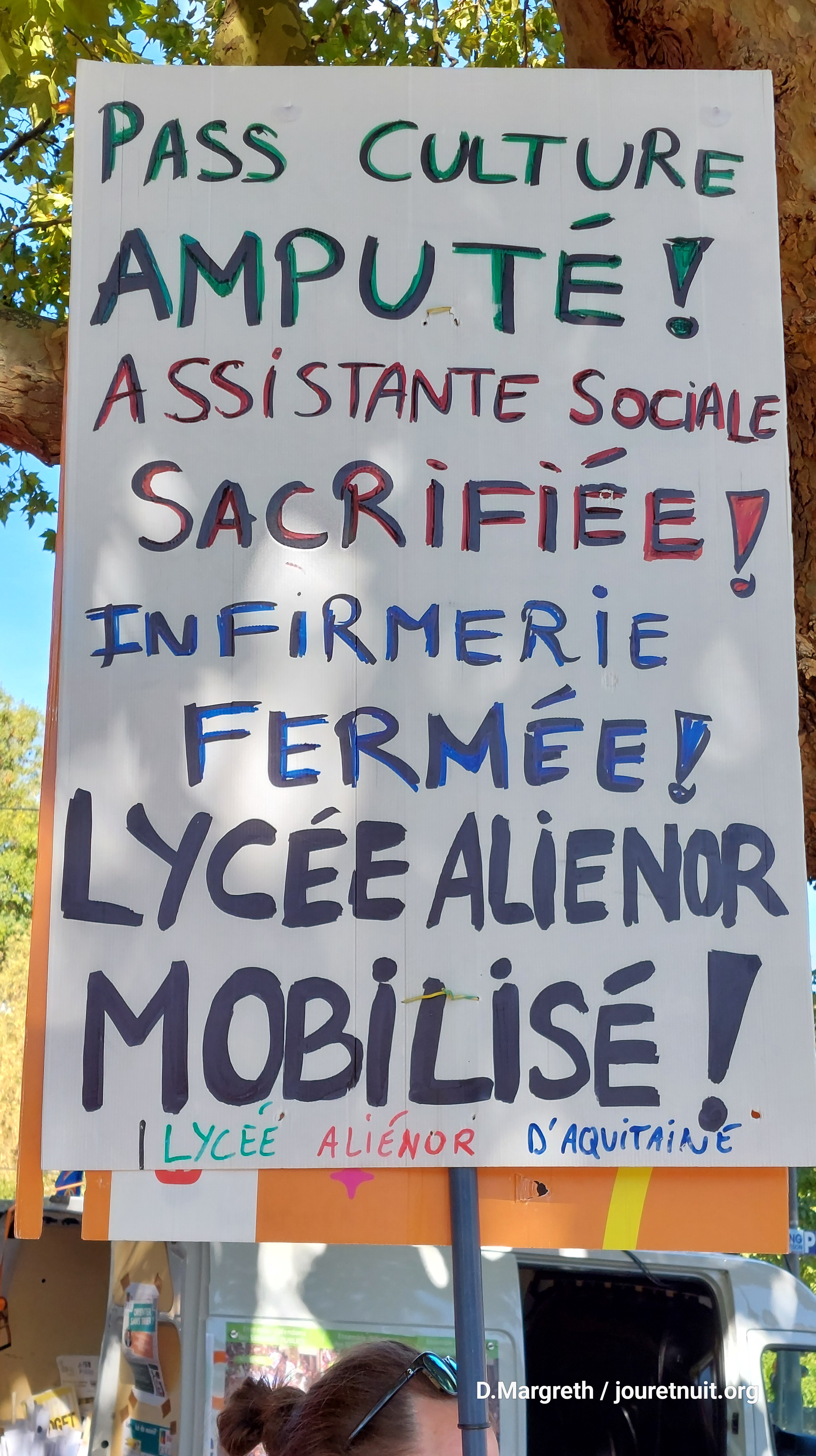 Le cortège était vivant grâce à un nombre important d’étudiants présents qui faisaient entendre leurs mots d’ordres parfois radicaux et d’une sono bien animée par la CGT.