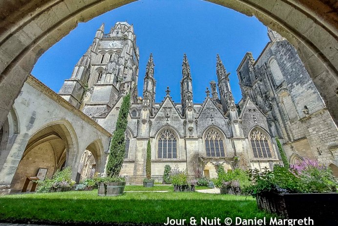 25 juillet 2021. Aujourd’hui, je vous fais découvrir la cathédrale Saint-Pierre à Saintes en Charente Maritime à partir du cloître qui lui est attenant et depuis l’esplanade de l’ancien hôpital Saint Louis qui offre une belle vue sur le centre historique de la ville surplombée par sa cathédrale.